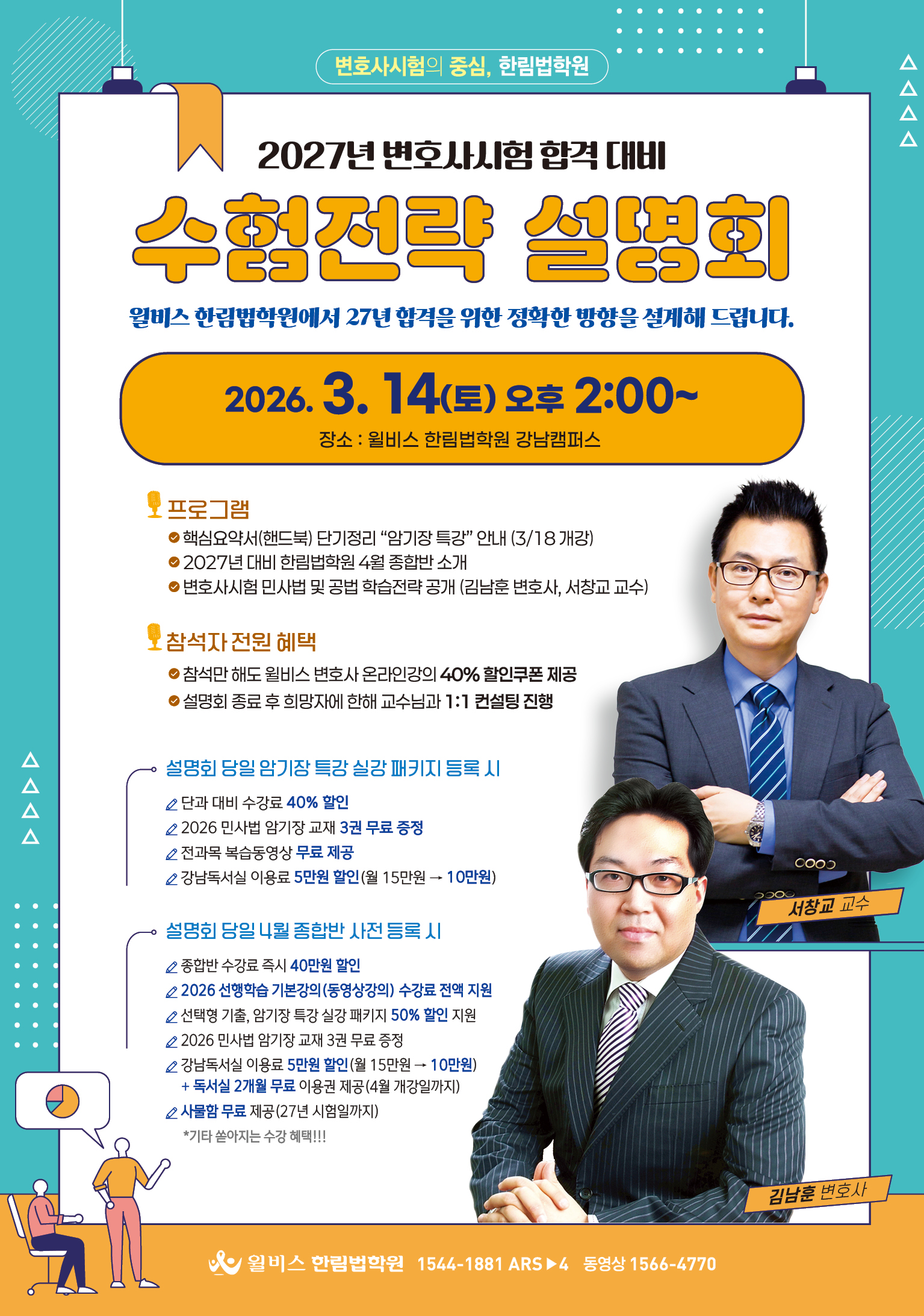 2027년 변호사시험 대비 수험전략 설명회(3/14 토)