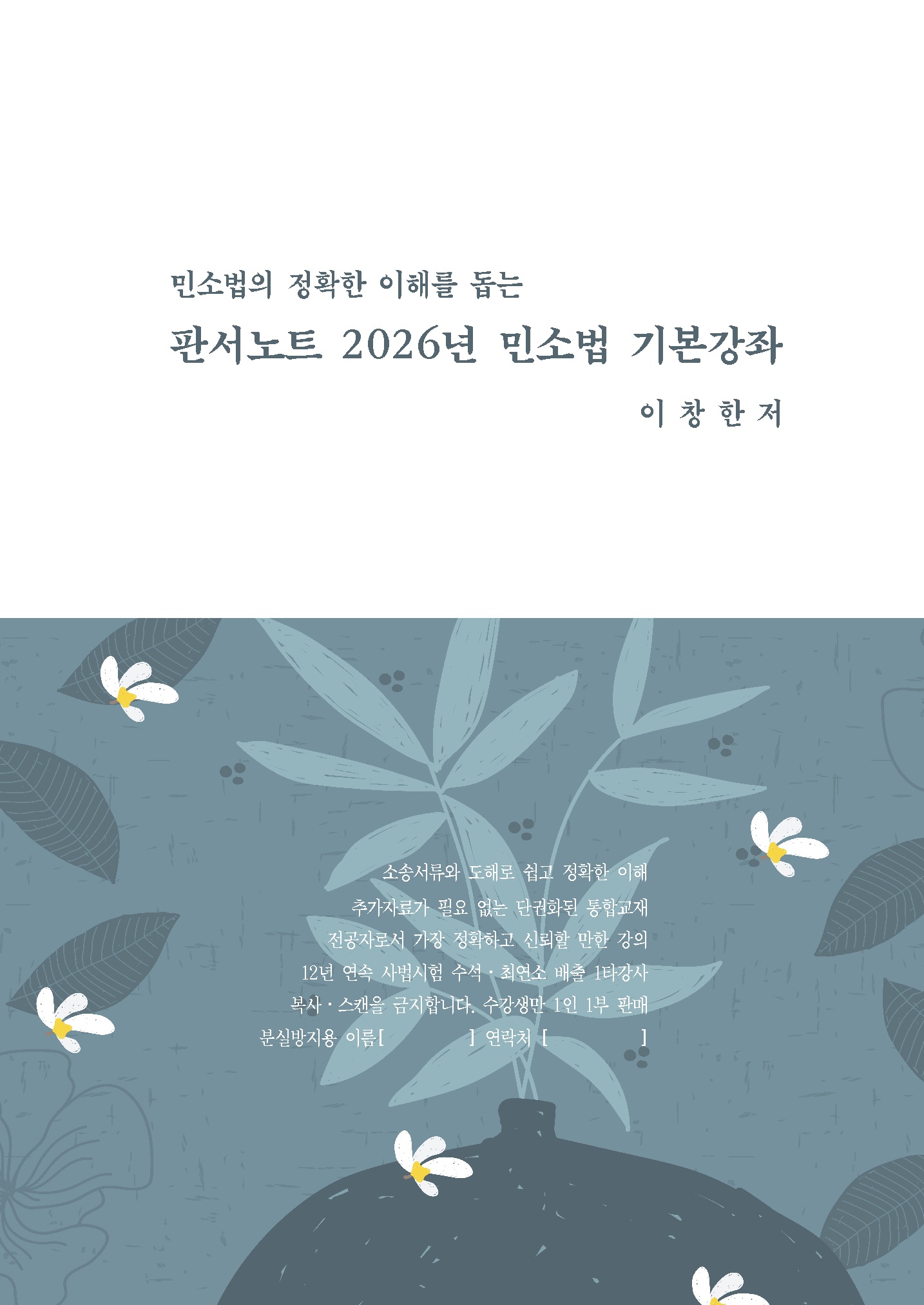 2025년부터는 전자책도 출간하고 있다. 전자책은 ‘여러 법령으로 바로가기(북마크)’와 ‘민사소송법 안에서 중요 조문 바로가기(북마크)’, ‘민법 안에서 중요 조문 바로가기(북마크)’ 만들어 두었으니, 독자들의 수험공부에 도움이 되길 바란다. 전자책의 자세한 기능은 이창한 카페의 [민사소송법 교재] 메뉴에 있는 영상 및 사진을 참조하기 바란다. 아울러 아래 머리말도 참조하기 바란다. 올해도 본 강사의 강의를 수강하고 합격한 수석, 최연소, 고득점합격자들의 합격수기 및 영상을 본 강사 카페에 업로드했으니 참조하기 바란다.