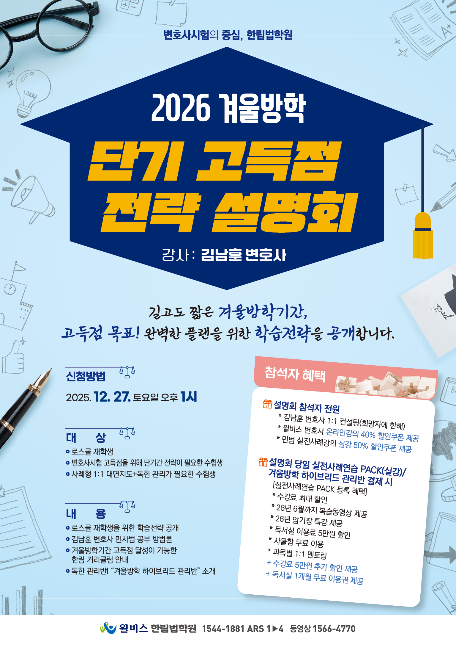 겨울방학 단기 고득점 수험전략 설명회(12/27 토)