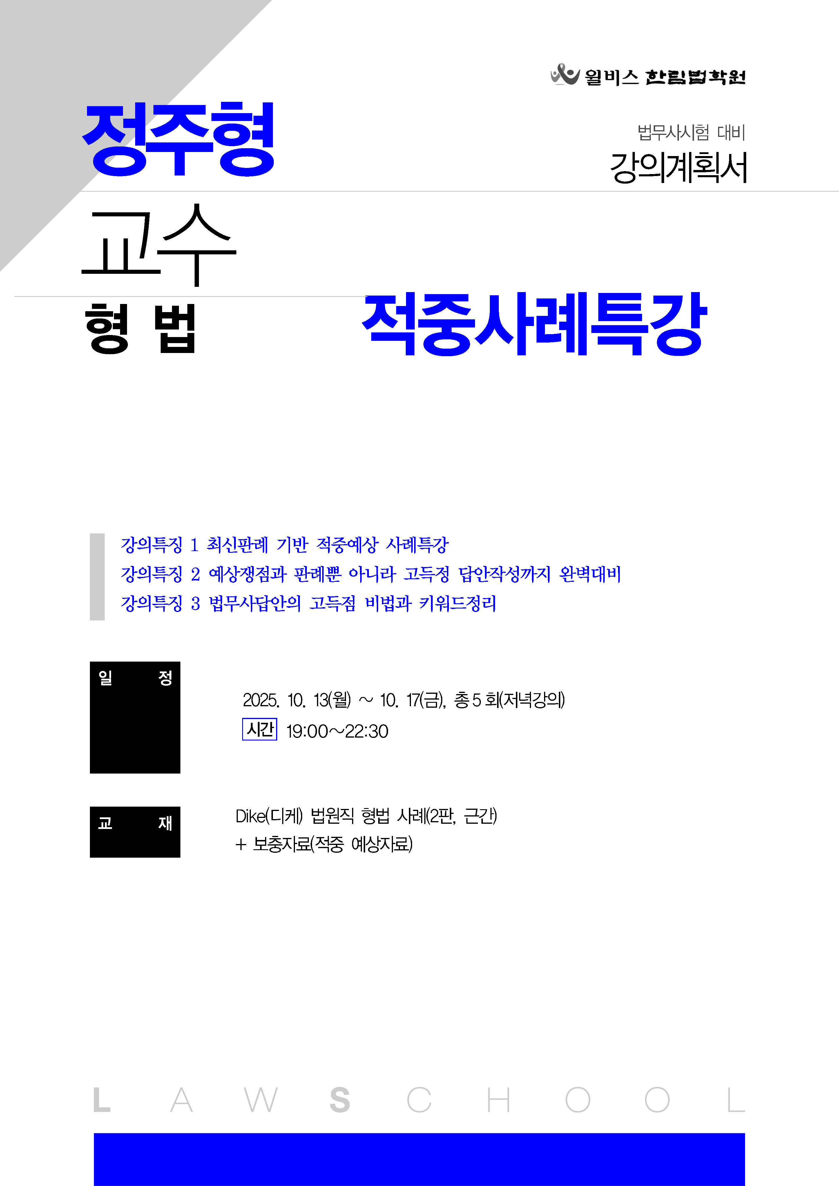 [특강] 정주형 교수 법무사 형법 적중사례특강(10.13, 월)