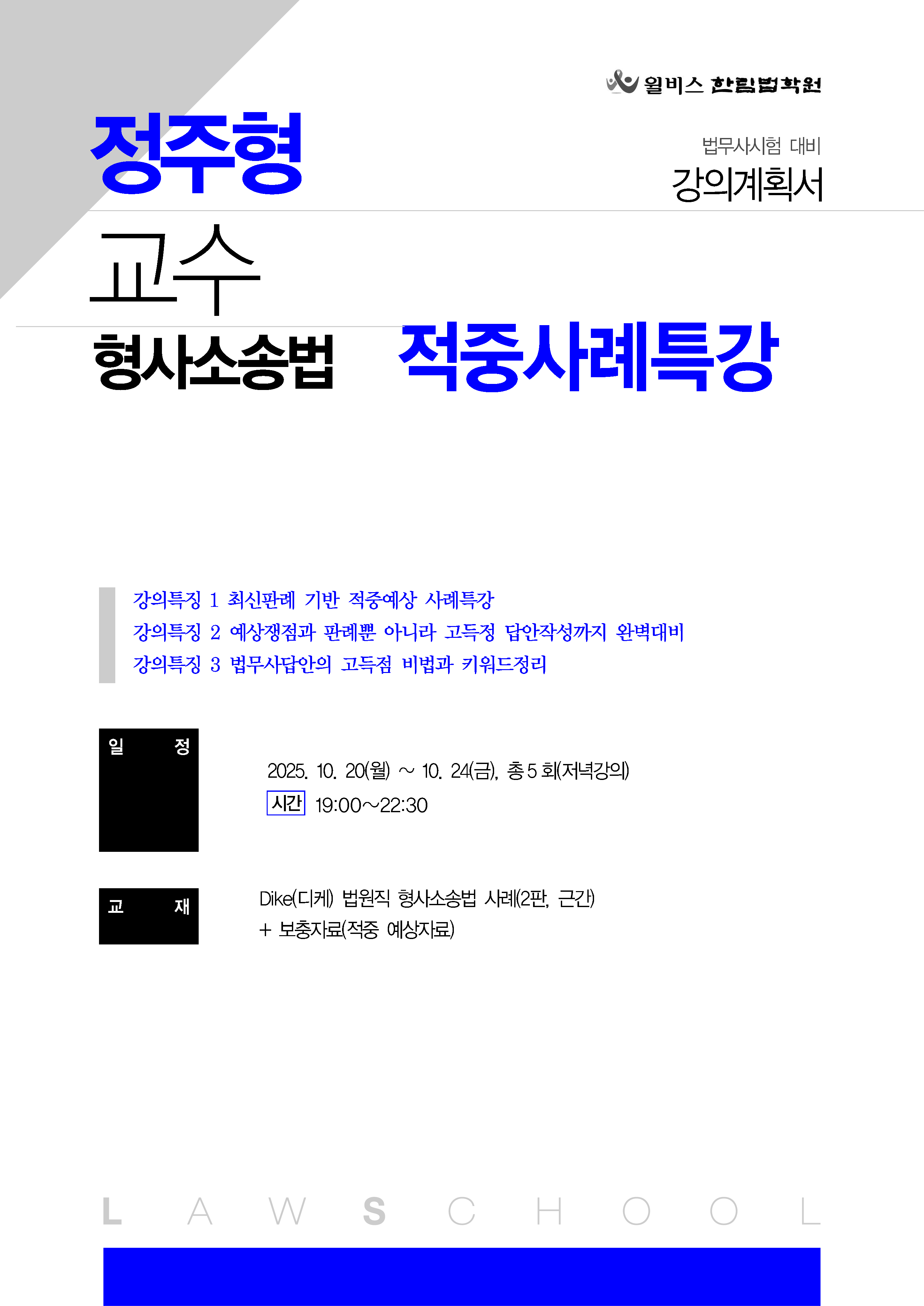 [특강] 정주형 교수 법무사 형사소송법 적중사례특강(10.20, 월)
