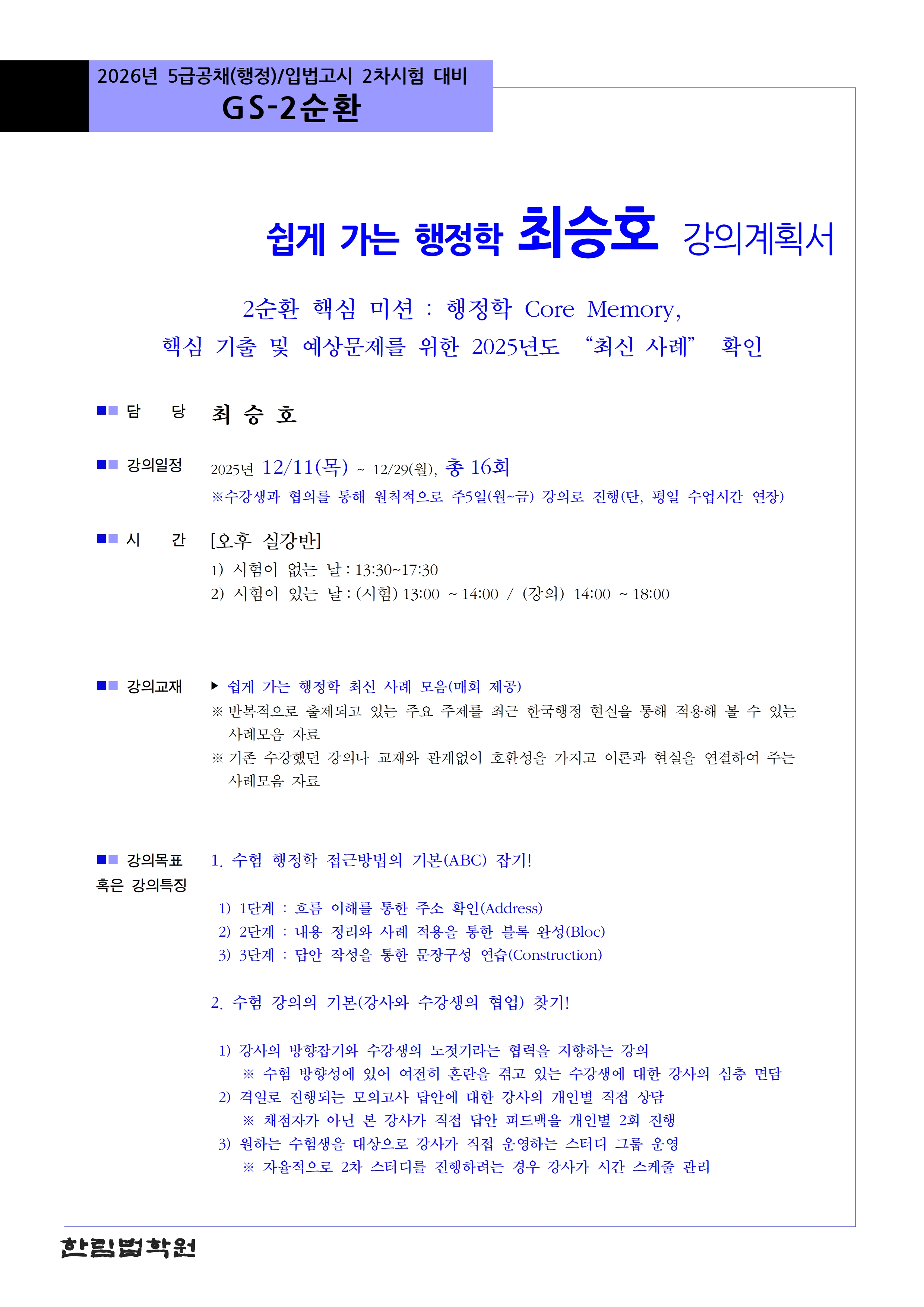 [2026년대비] 최승호 행정학 GS-2순환(12/11,목_개강)
