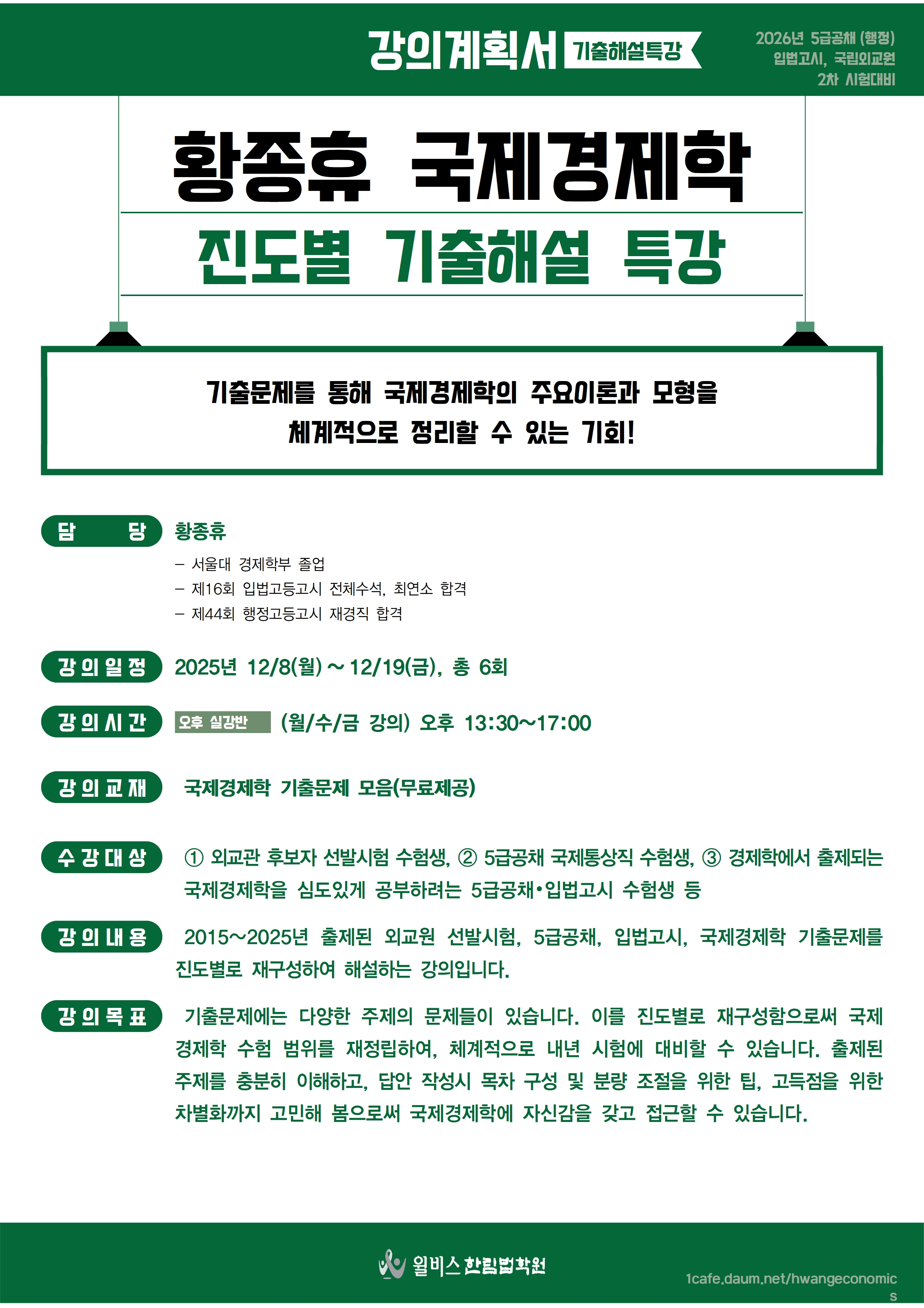 [2026년대비] 황종휴 국제경제학 기출해설특강(12/8,월_개강)