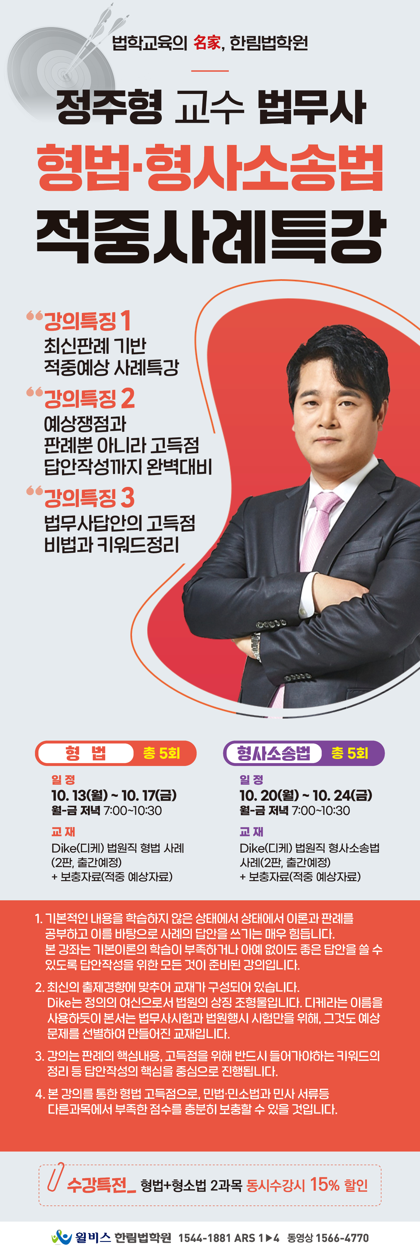 [신림] 정주형 교수 법무사 형법·형사소송법 적중사례 특강(10.13, 월)