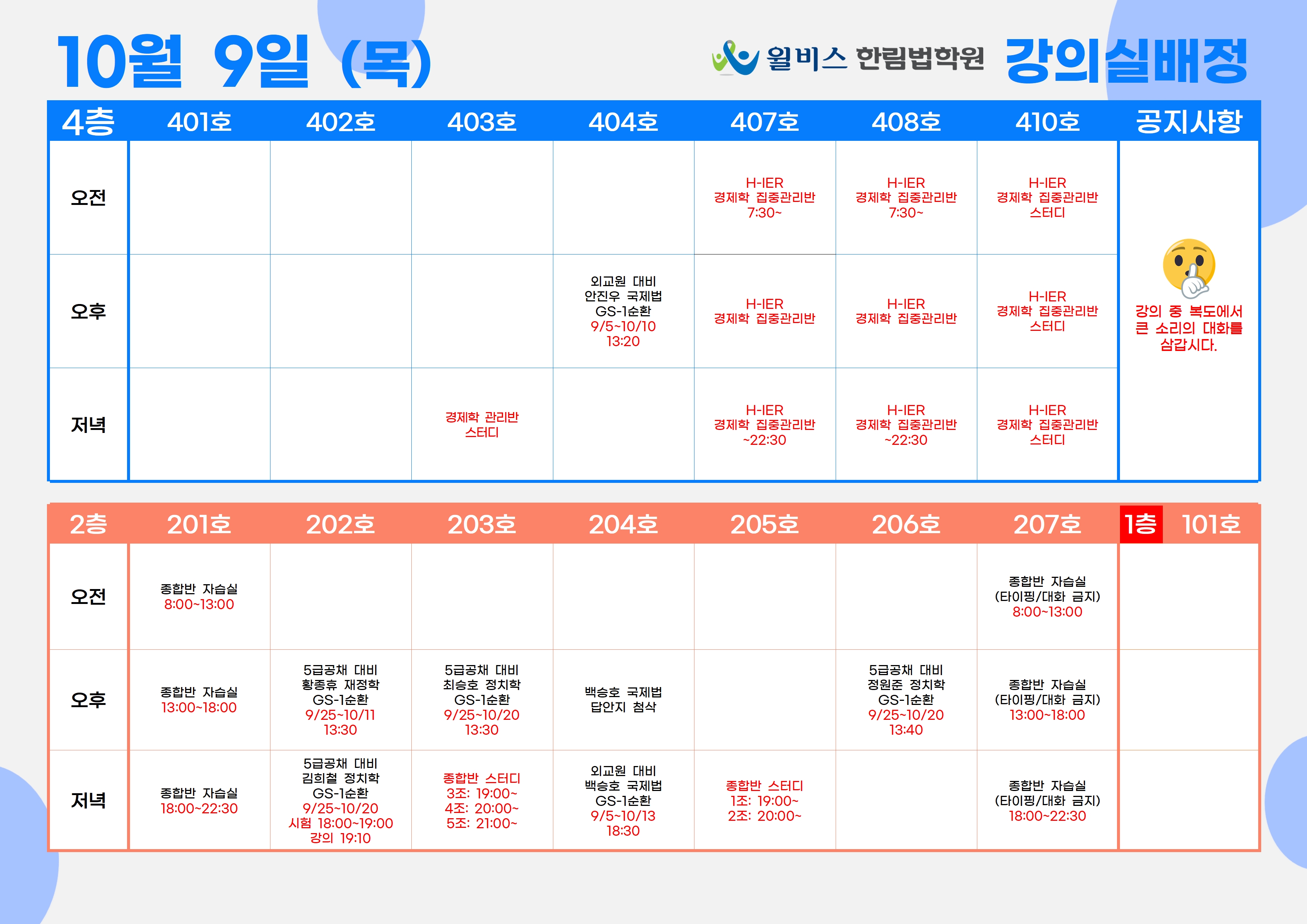 10월 9일(목) 강의실 배정표
