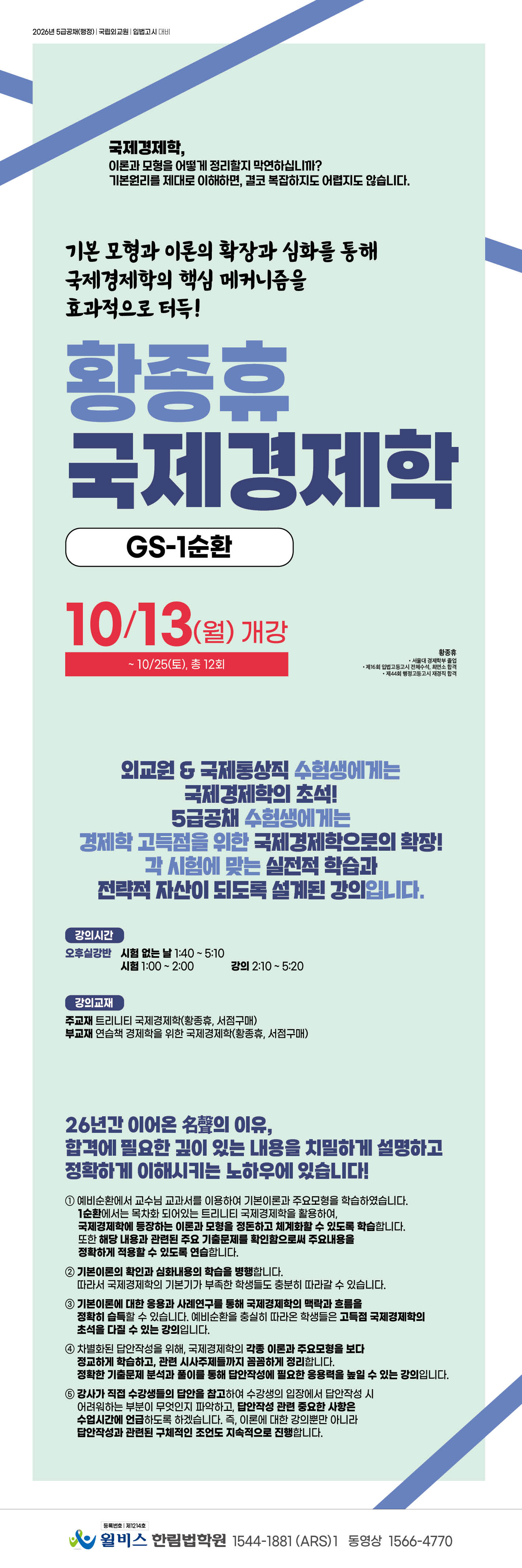 [2026년대비] 황종휴 국제경제학 GS-1순환(10/13,월_개강)