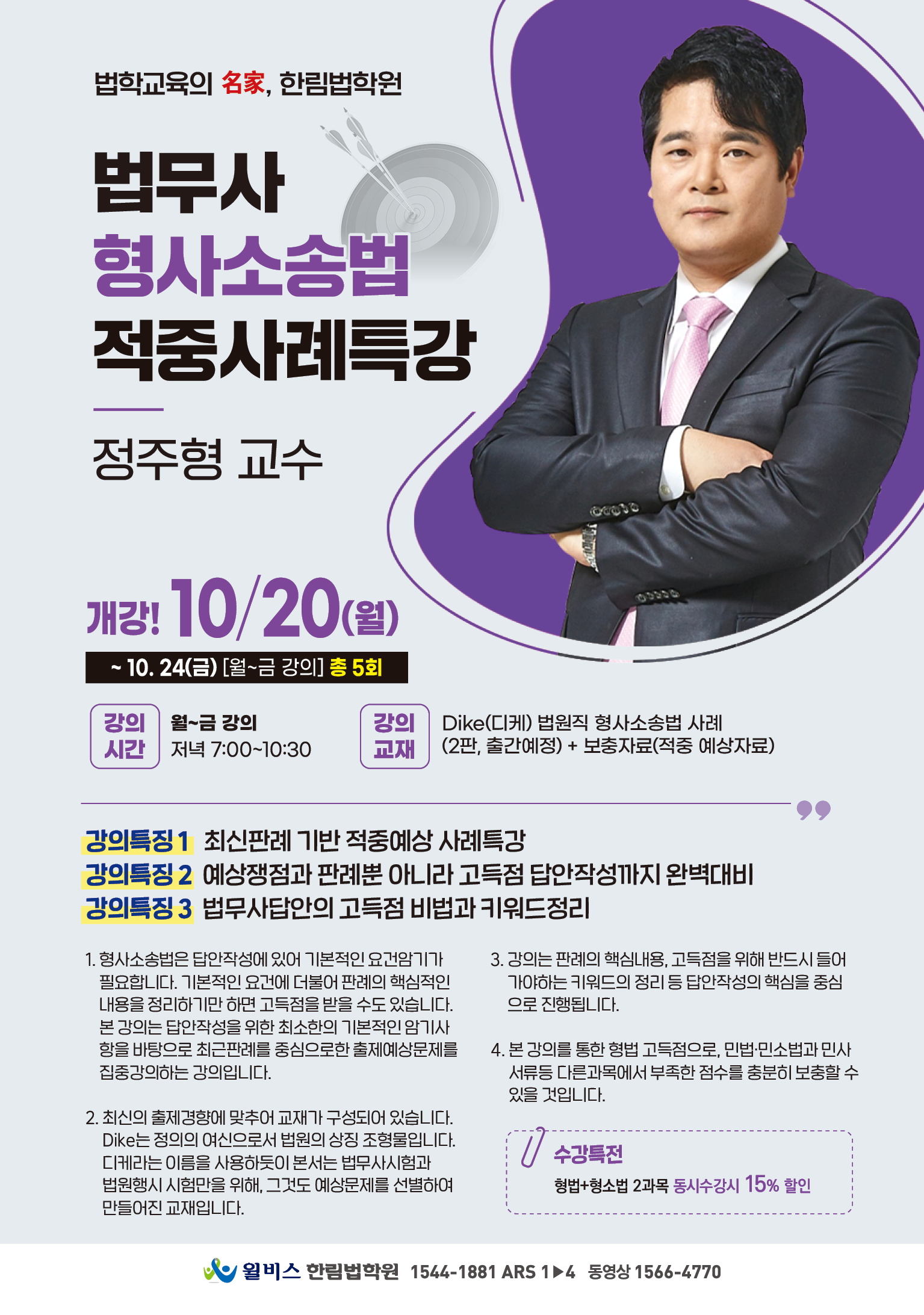 [신림] 정주형 교수 법무사 형사소송법 적중사례 특강(10.20, 월)