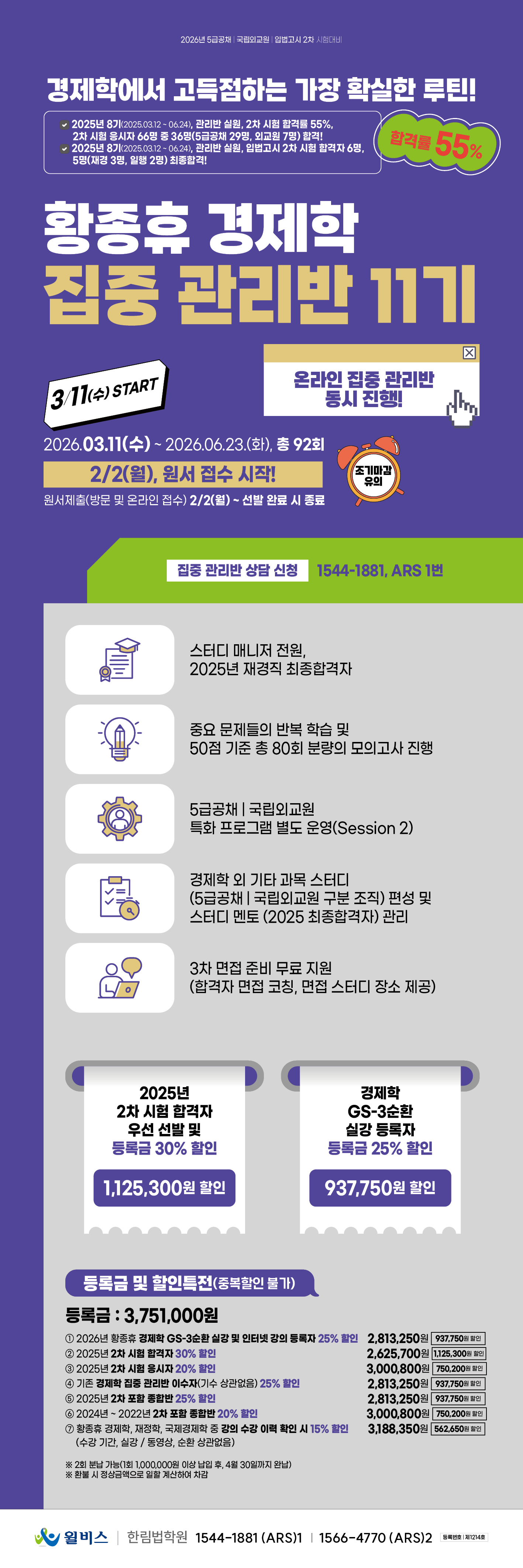 ★2/2(월) 접수시작★ 황종휴 경제학 집중 관리반 11기(3/11,수_START!)