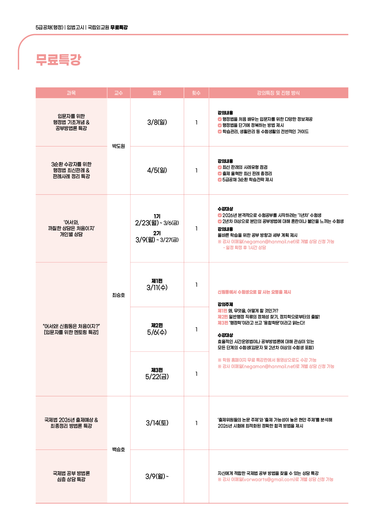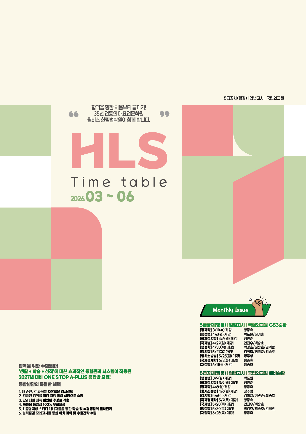 [2026년|2027년대비] 5급공채 | 입법고시 | 국립외교원 3~6월 시간표(TIMETABLE)