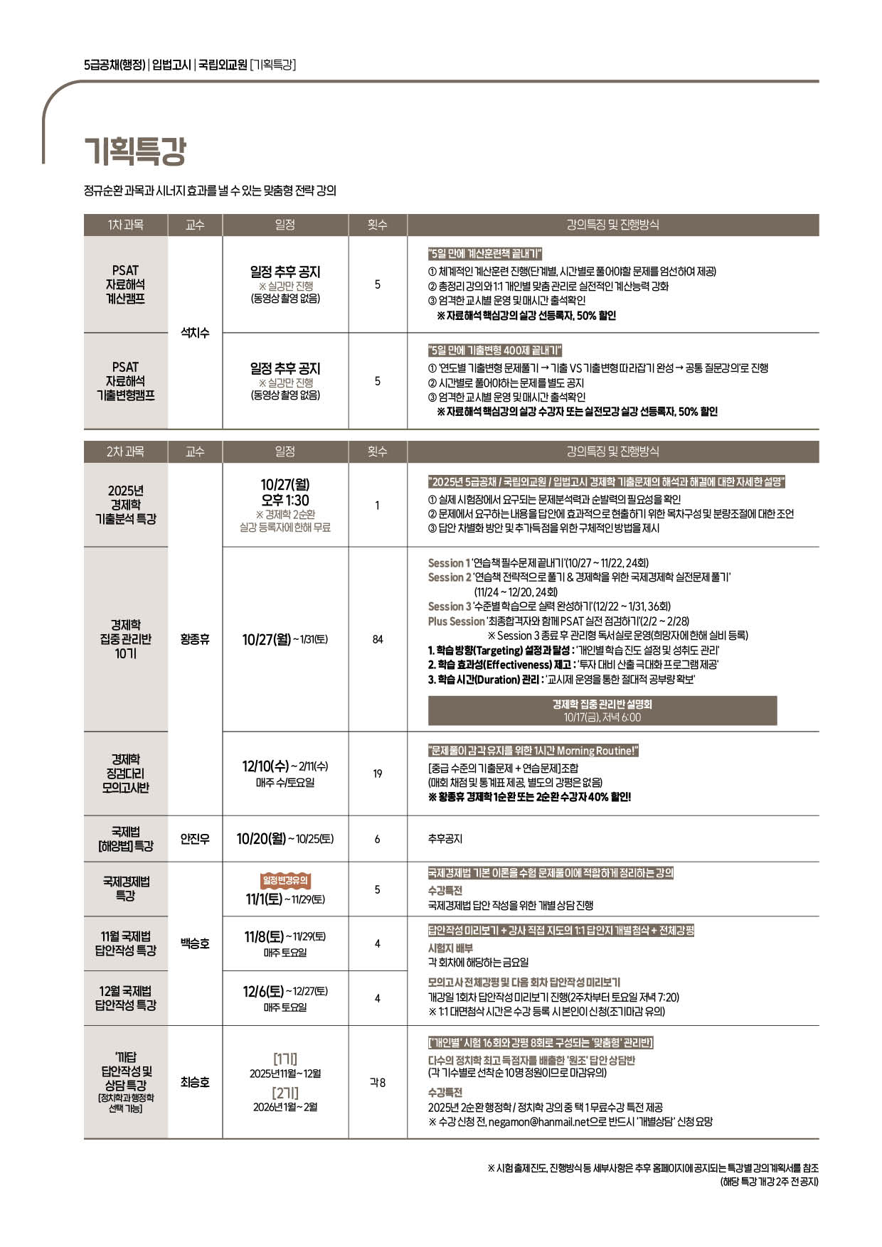 [2026년대비] PSAT l 5급공채ㅣ입법고시 l 국립외교원 25.10 ~ 26.01월 시간표(TIMETABLE)