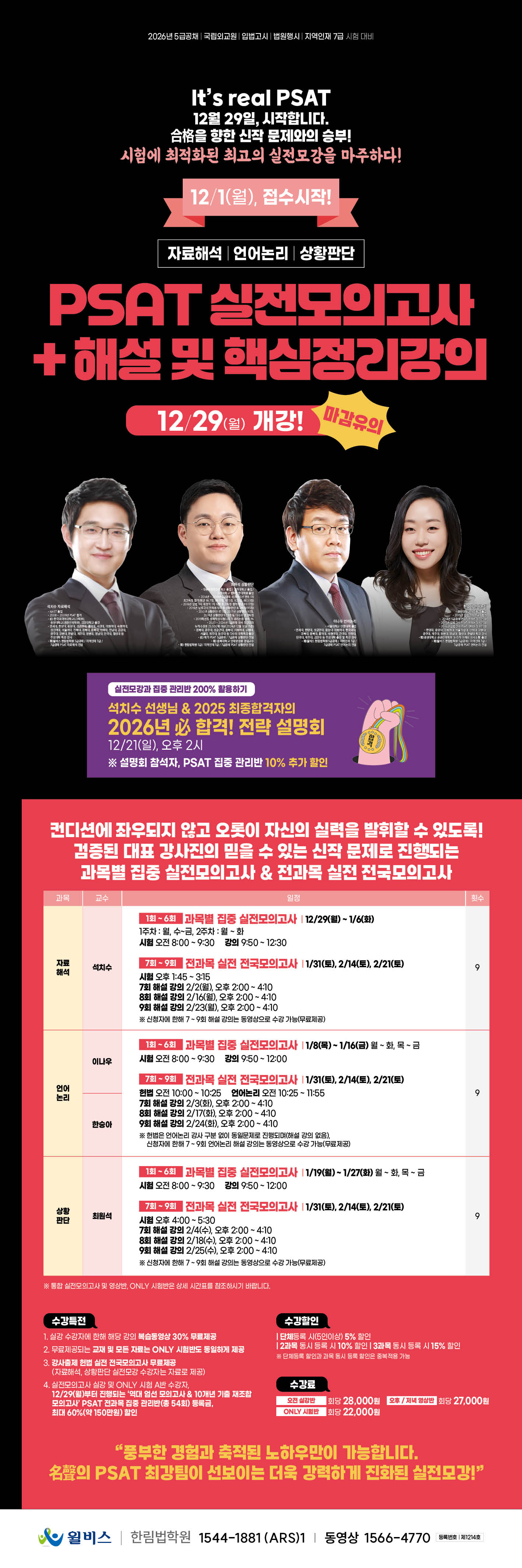 [2026년대비] 자료해석 | 언어논리 | 상황판단 PSAT 실전모의고사(12/29,월_개강)