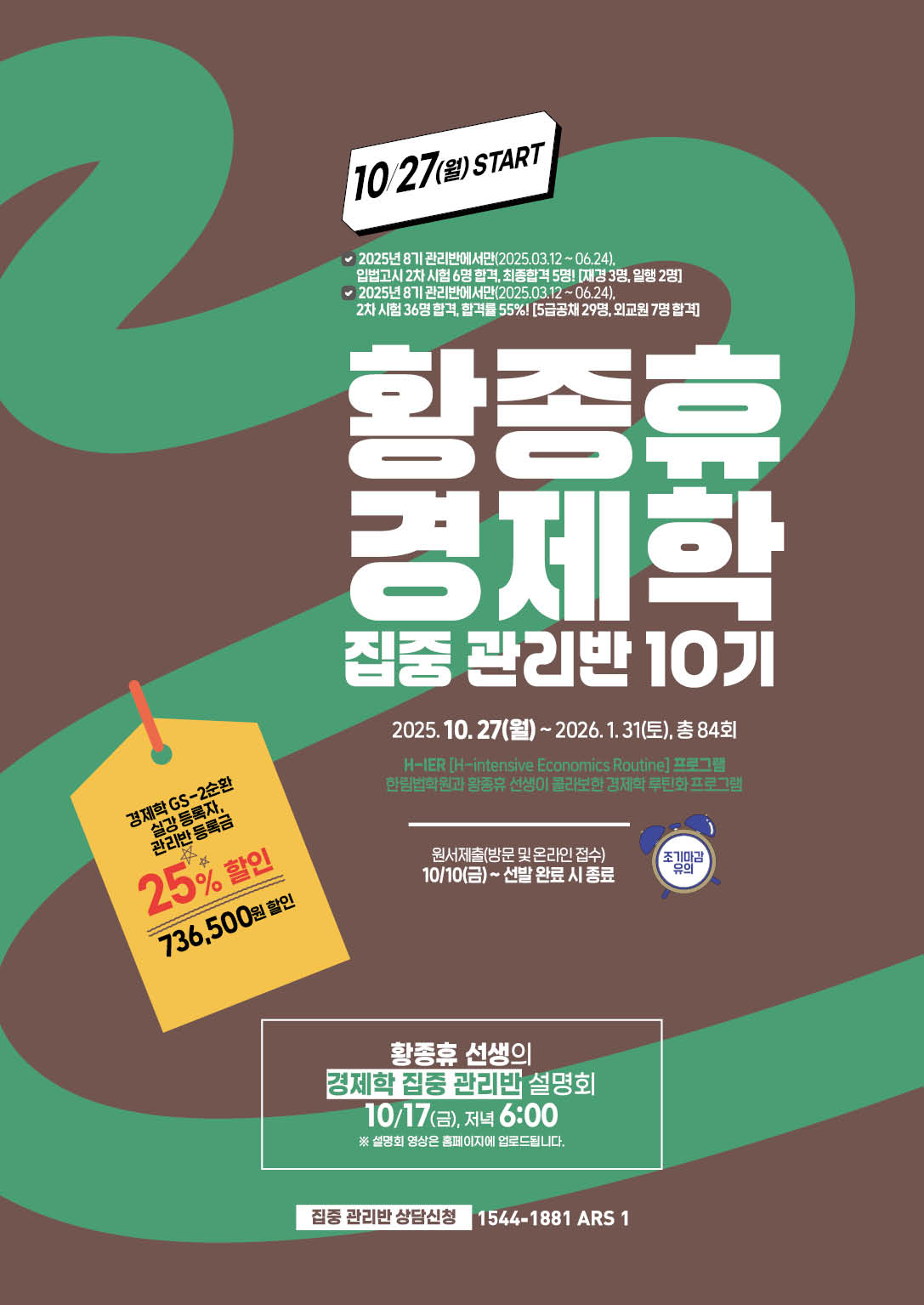 황종휴 경제학 집중 관리반 10기[H-IER 프로그램](10/27,월_START!)