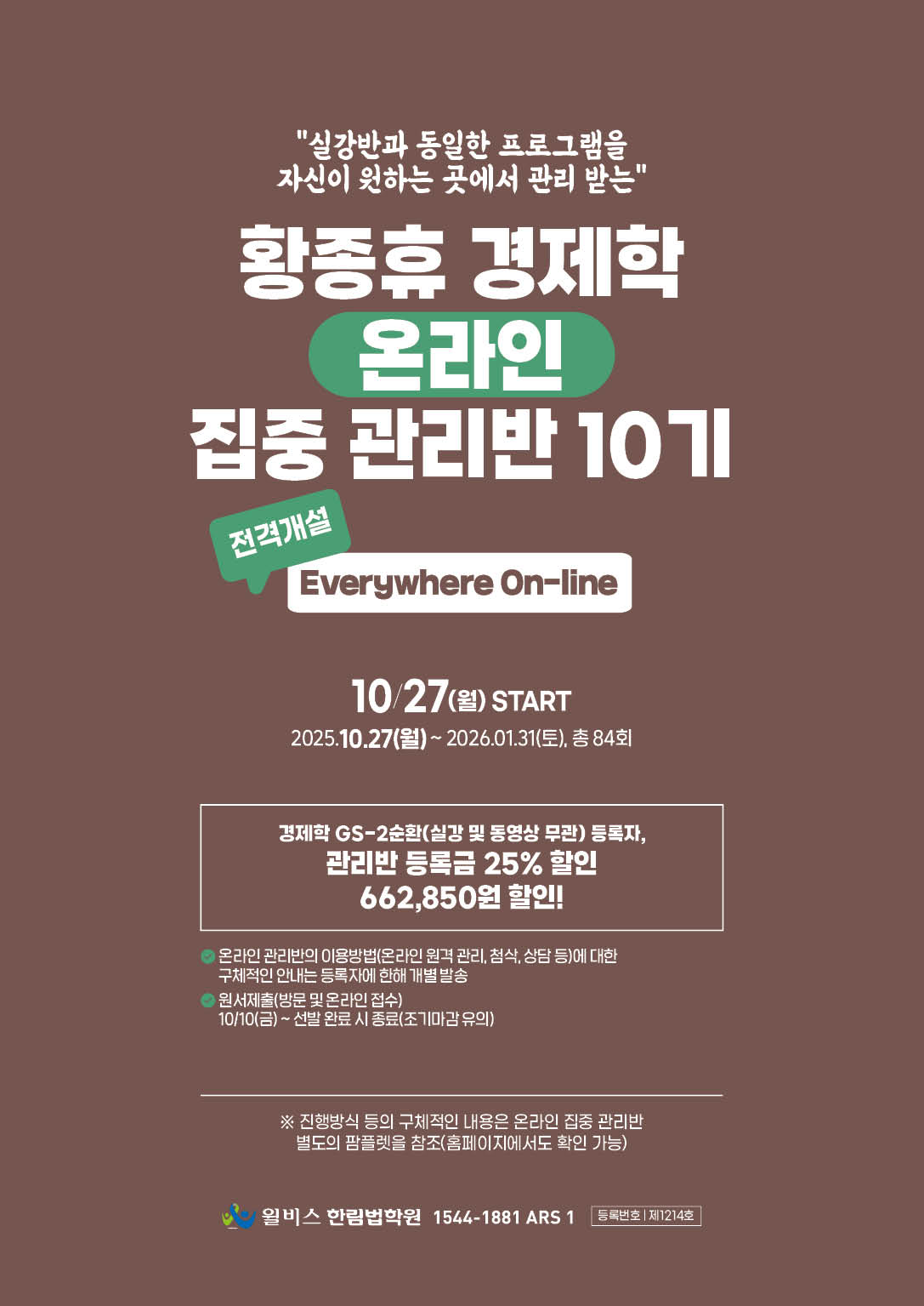 황종휴 경제학 온라인 집중 관리반 10기 상세보기 ▶