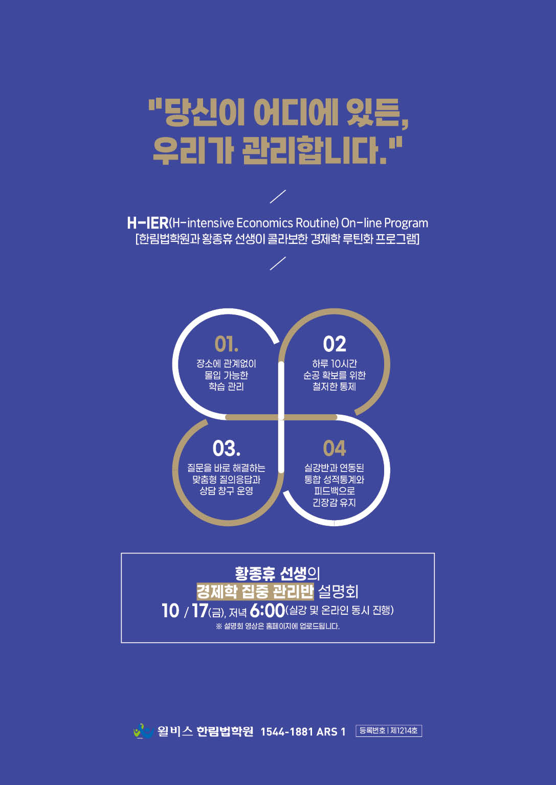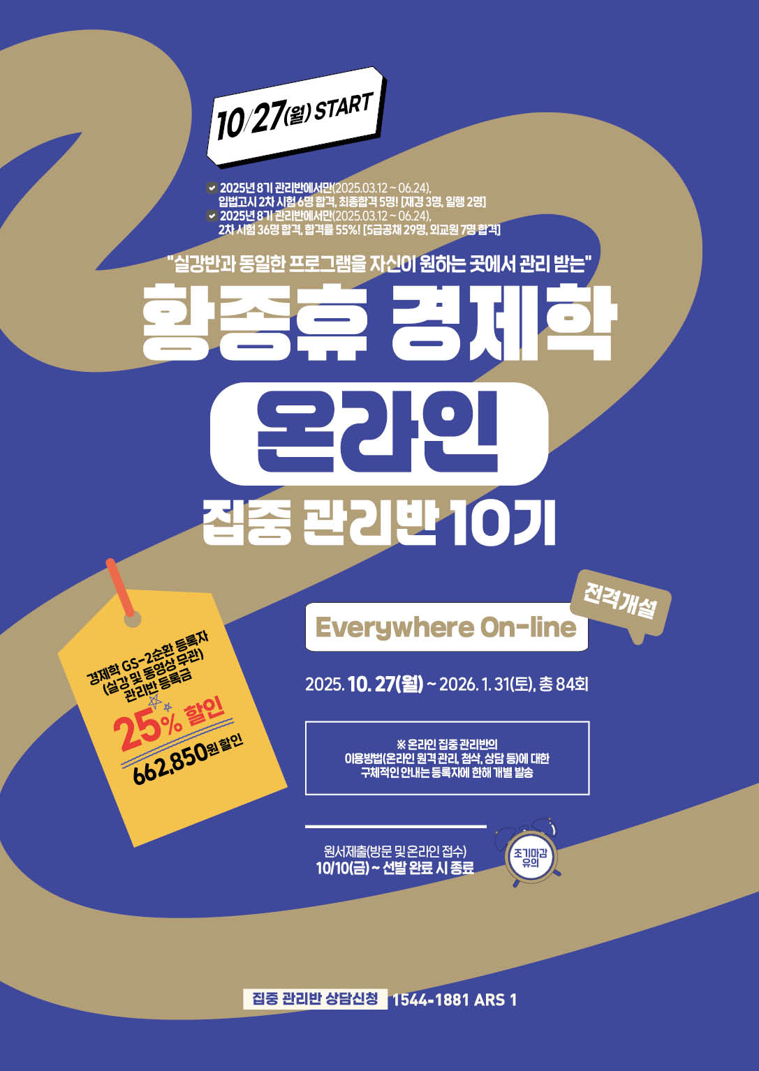 황종휴 경제학 "온라인" 집중 관리반 10기[Everywhere On-line](10/27,월_START!)
