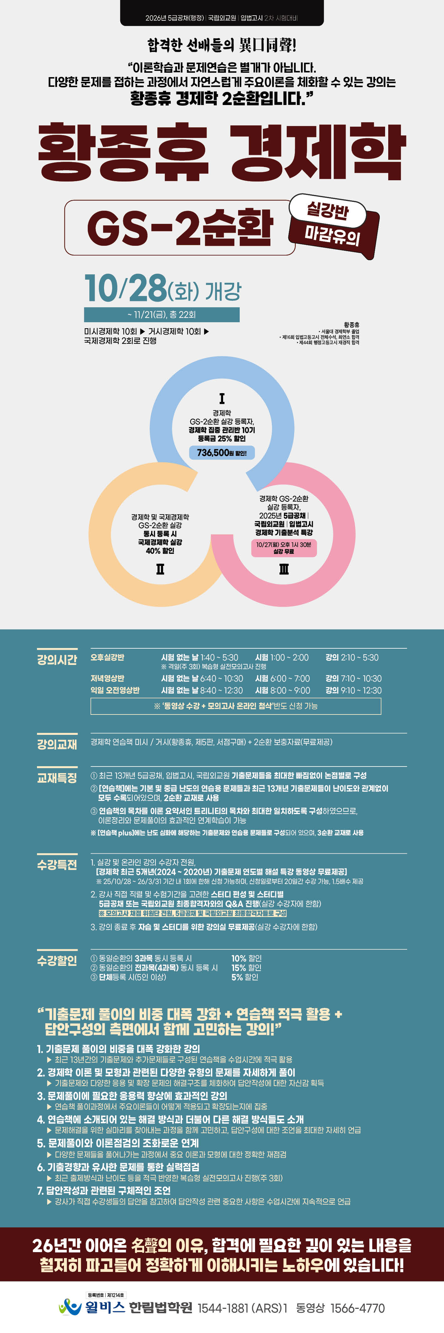 ★ 경제학 GS2순환 등록 시 "기출분석 특강(10/27,월 개강)" 무료 수강 ★