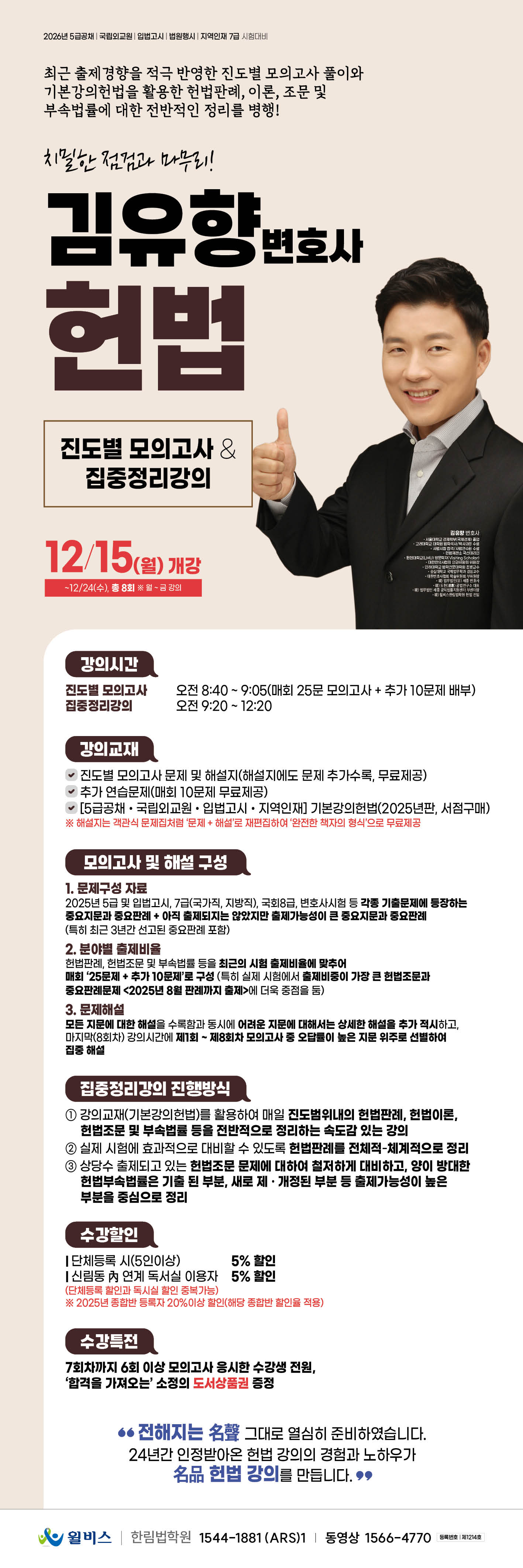 [학원실강]김유향 헌법 진도별 모의고사 결제 바로가기 ▶