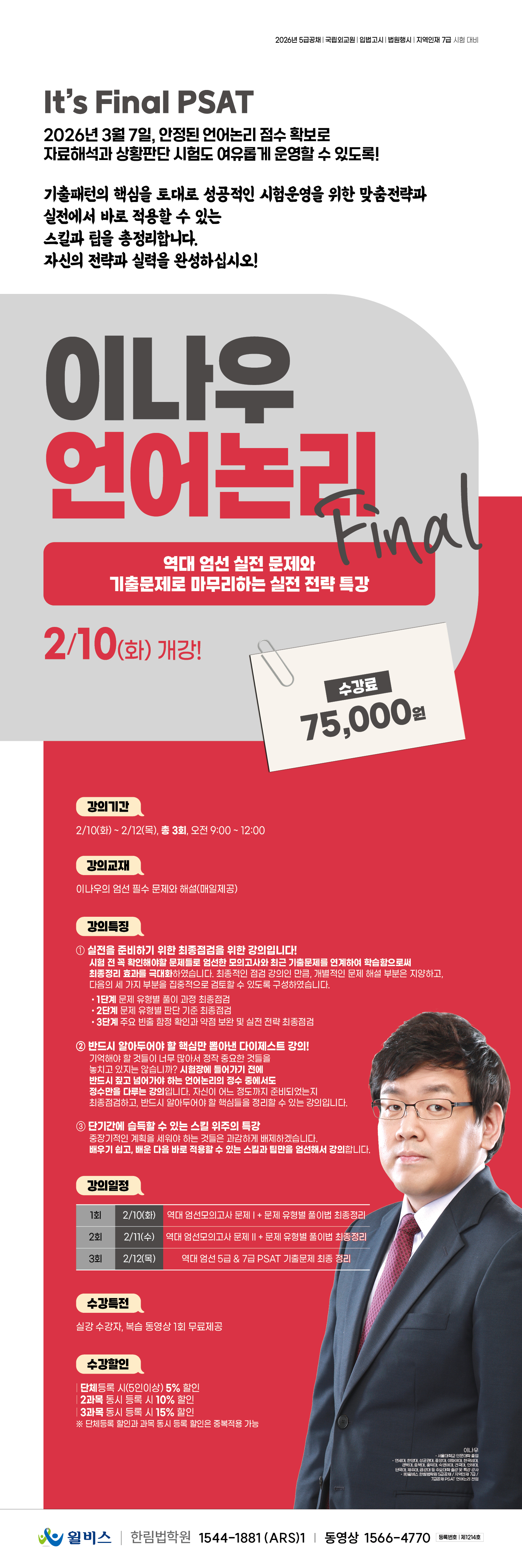 [신림] 2026년 대비 이나우 언어논리 Final 특강(2/10,화_개강)