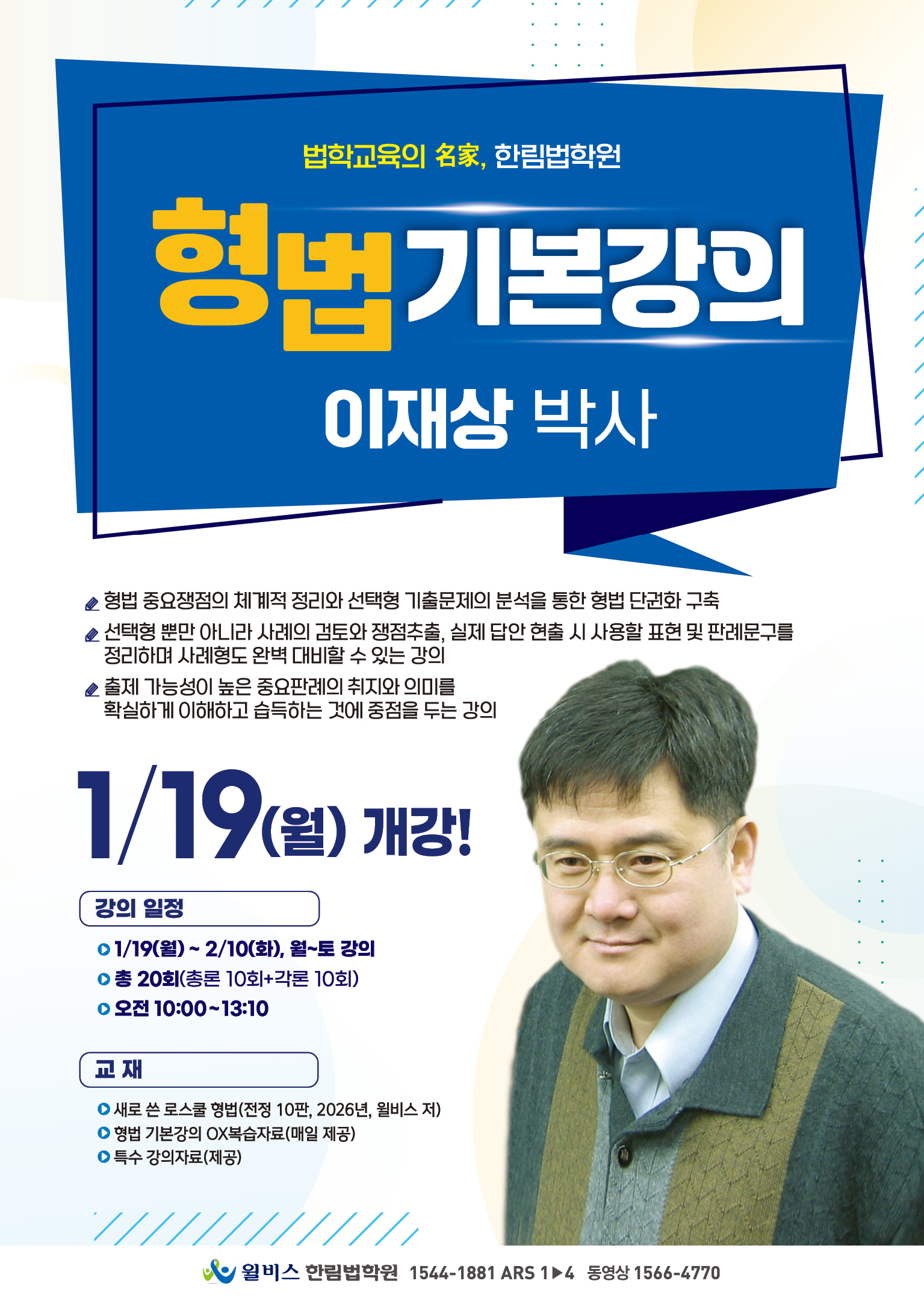 [강남] 이재상 박사 형법 기본강의(1/19, 월)