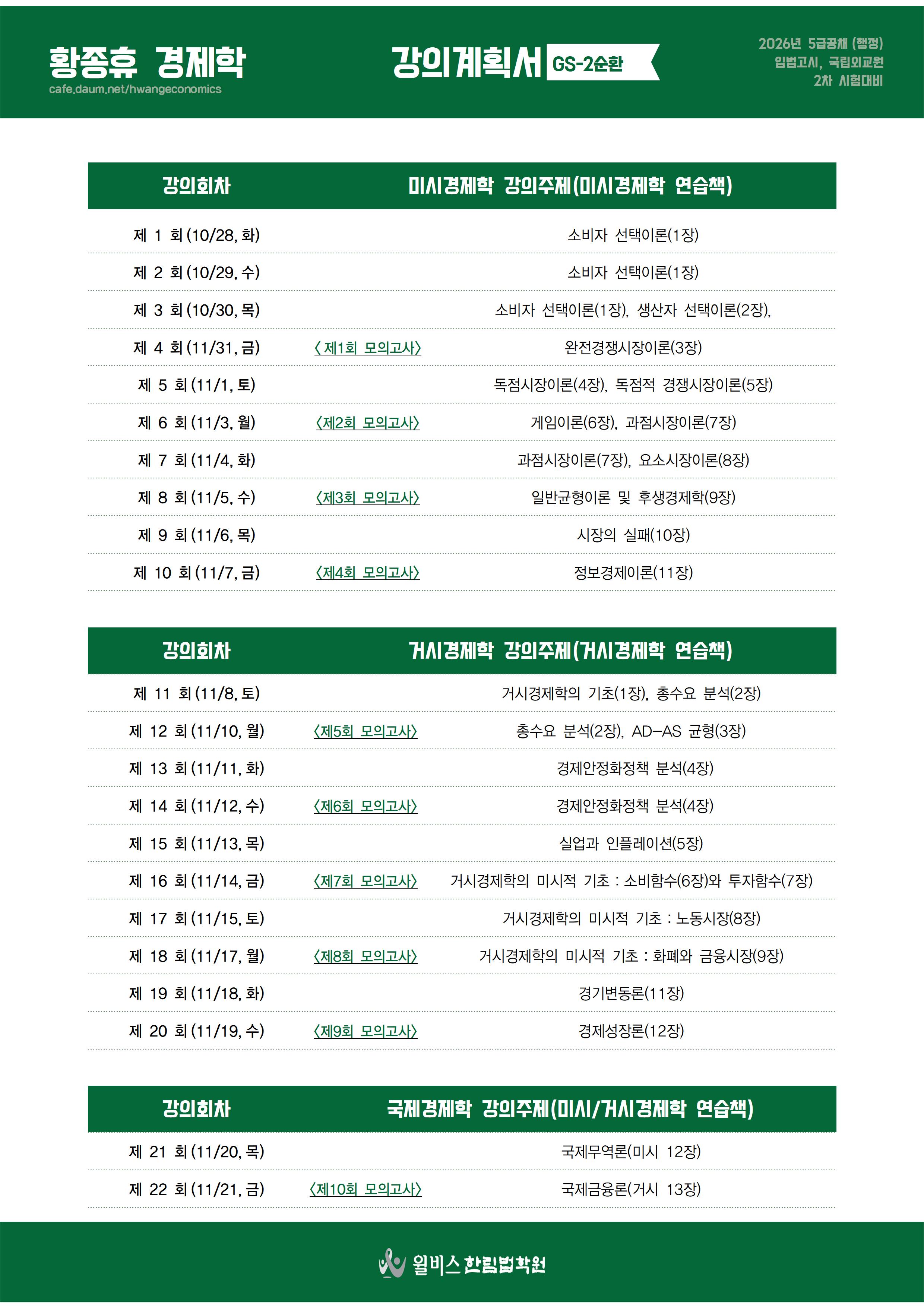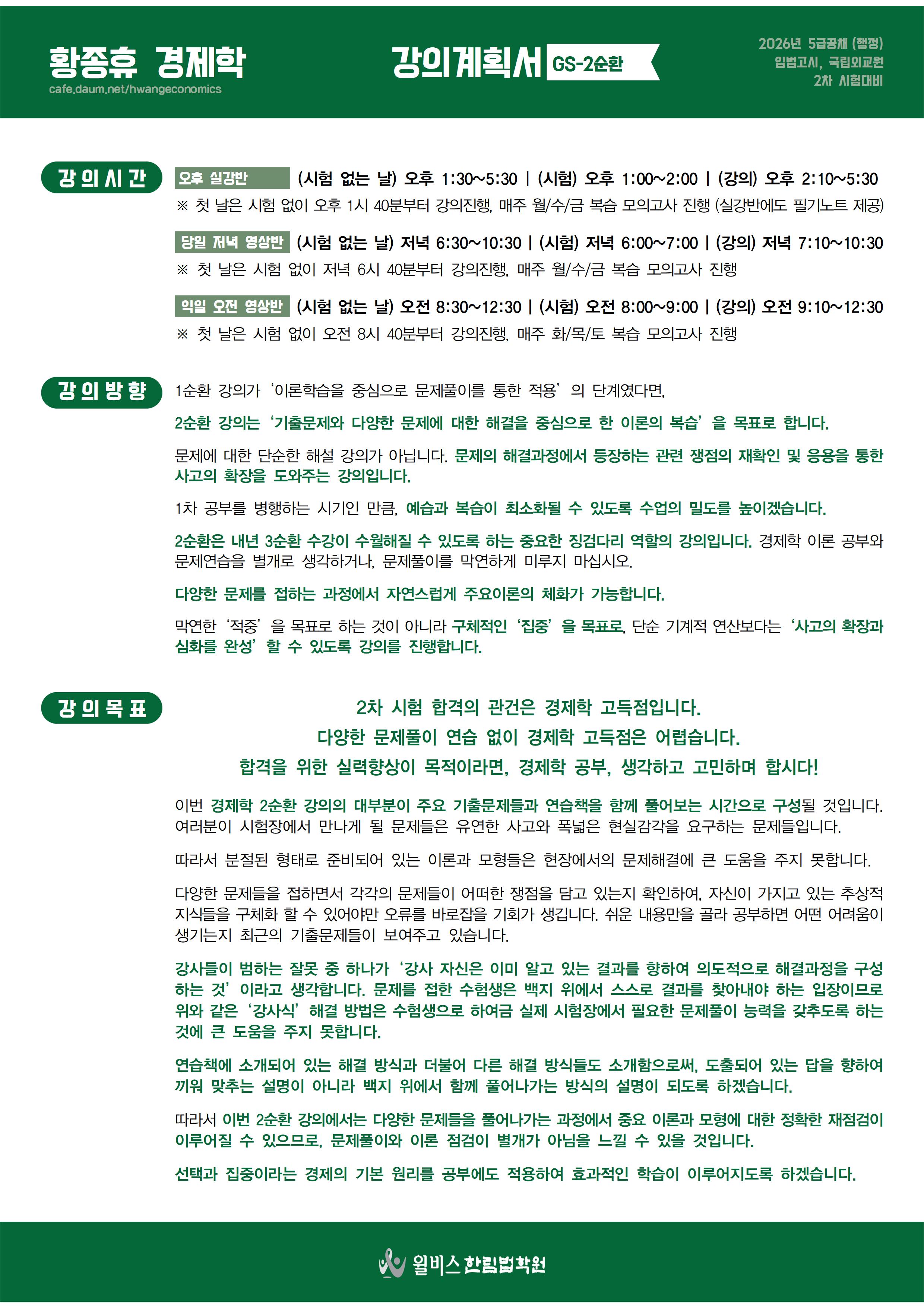 [2026년대비] 황종휴 경제학 GS-2순환(10/28,화_개강)