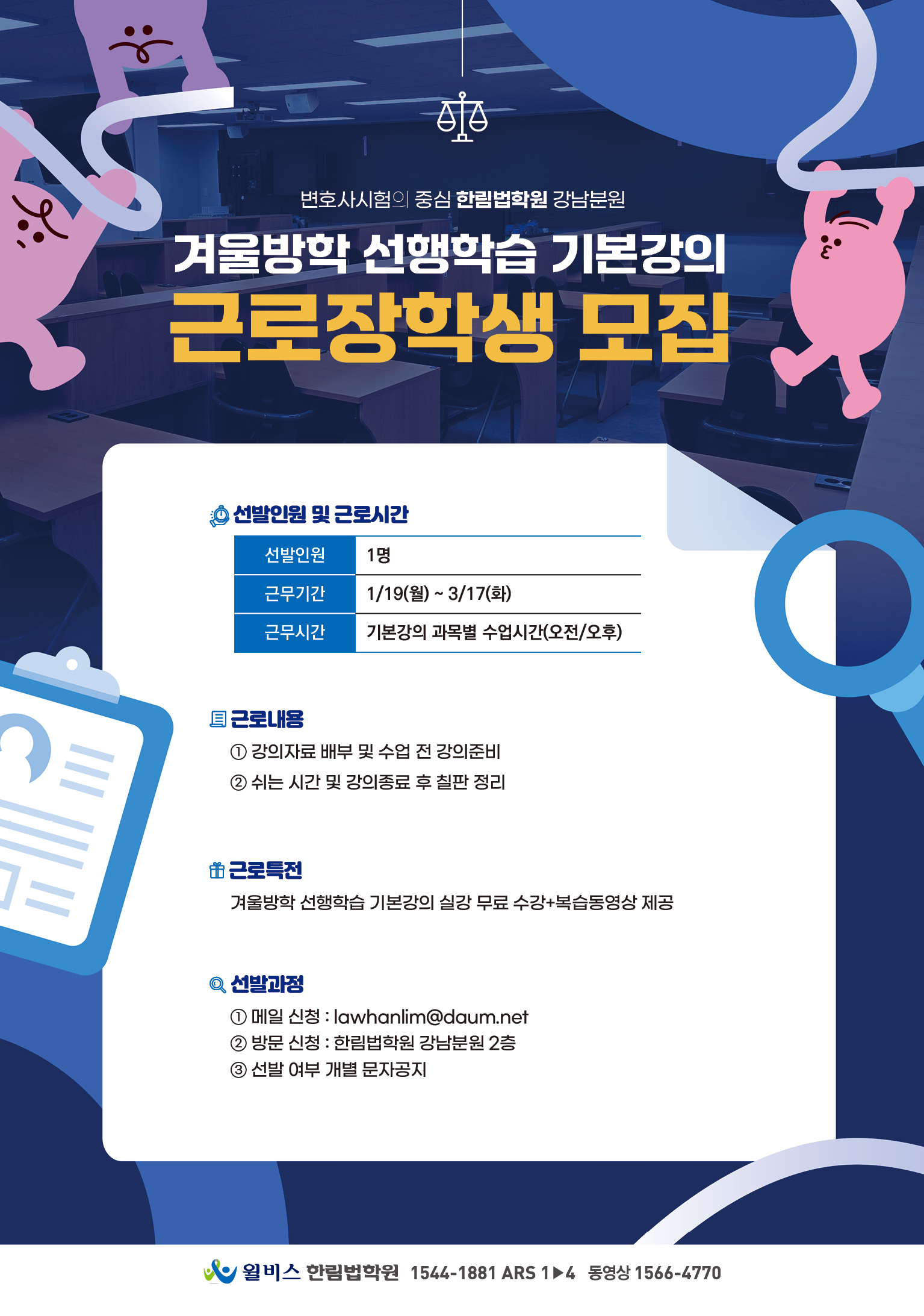 [모집 공고] 변호사 겨울방학 선행학습 기본강의 근로장학생 모집