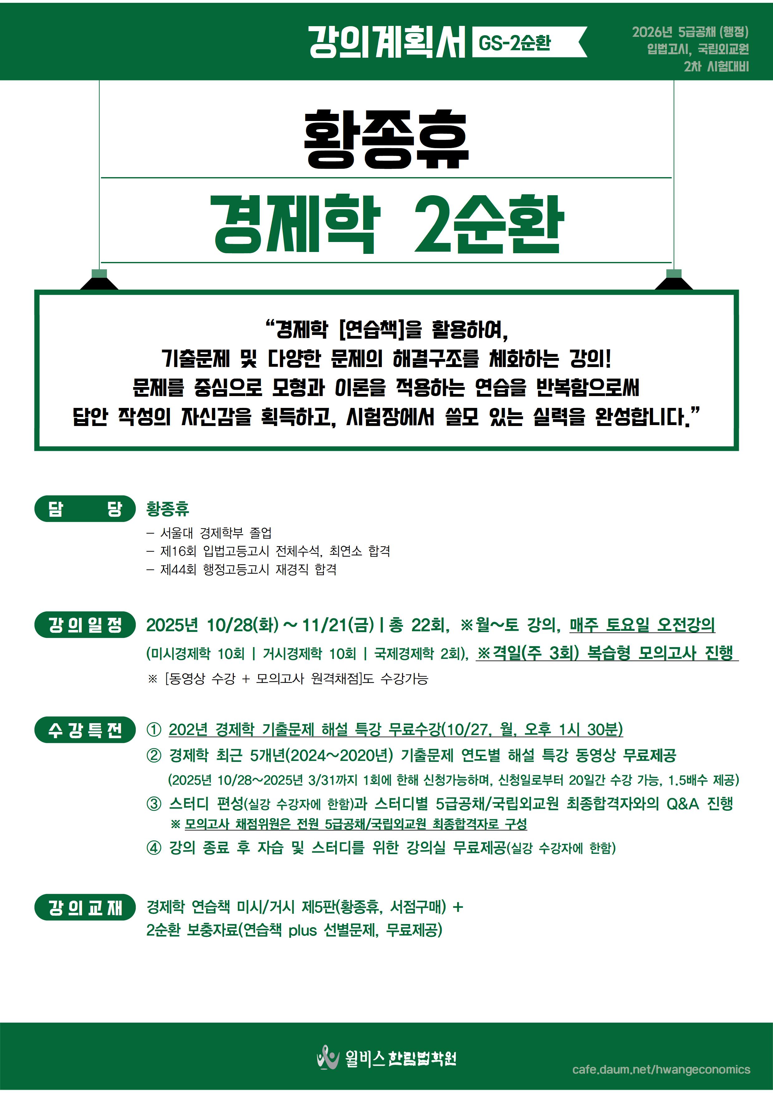 [2026년대비] 황종휴 경제학 GS-2순환(10/28,화_개강)
