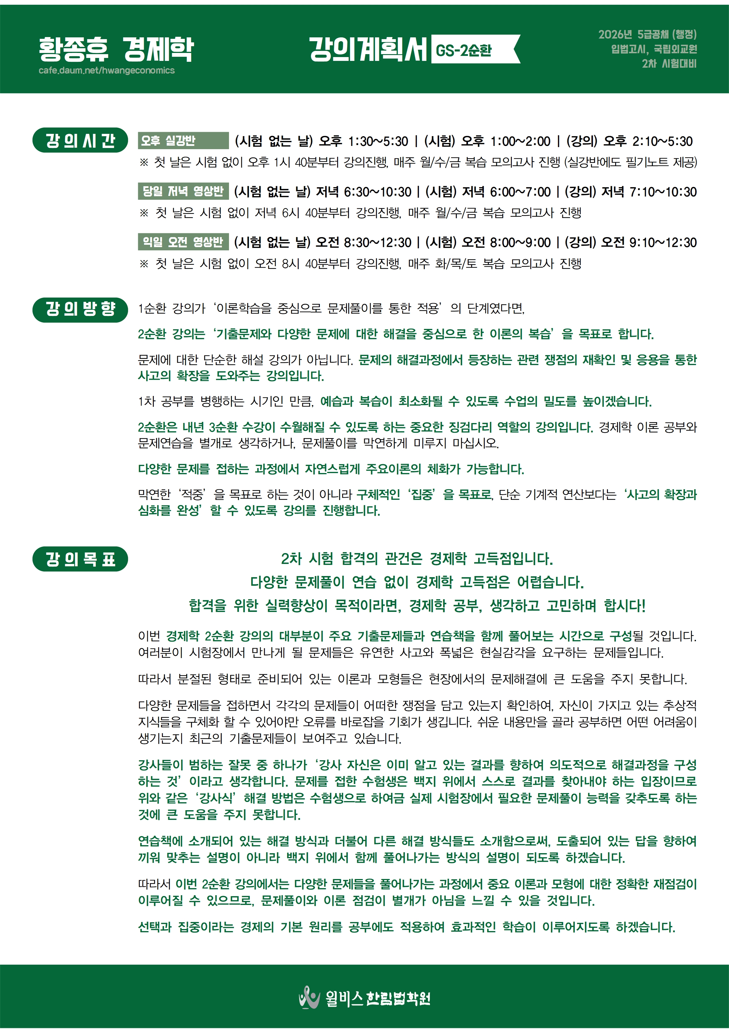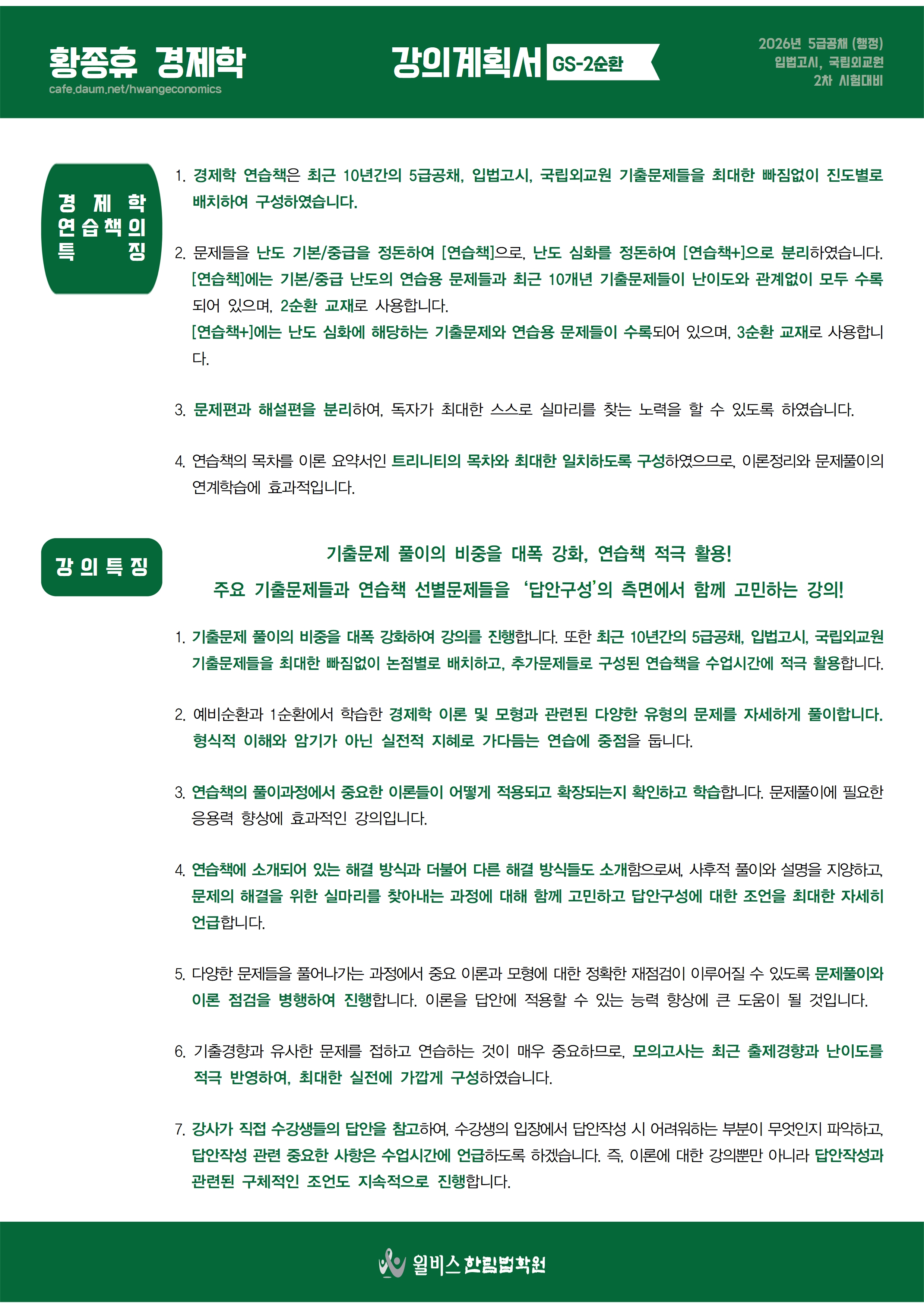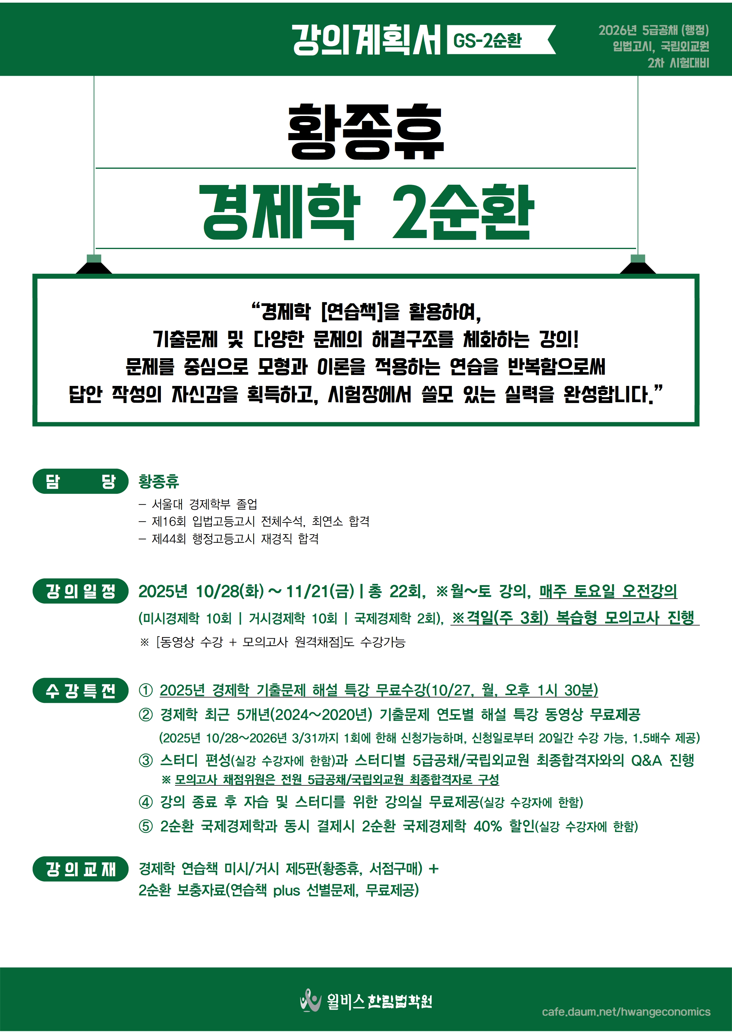 [2026년대비] 황종휴 경제학 GS-2순환(10/28,화_개강)