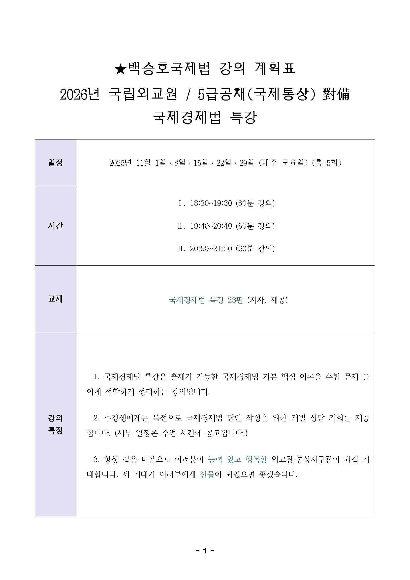 [2026년대비] 백승호 국제경제법 특강(11/1,토_개강)