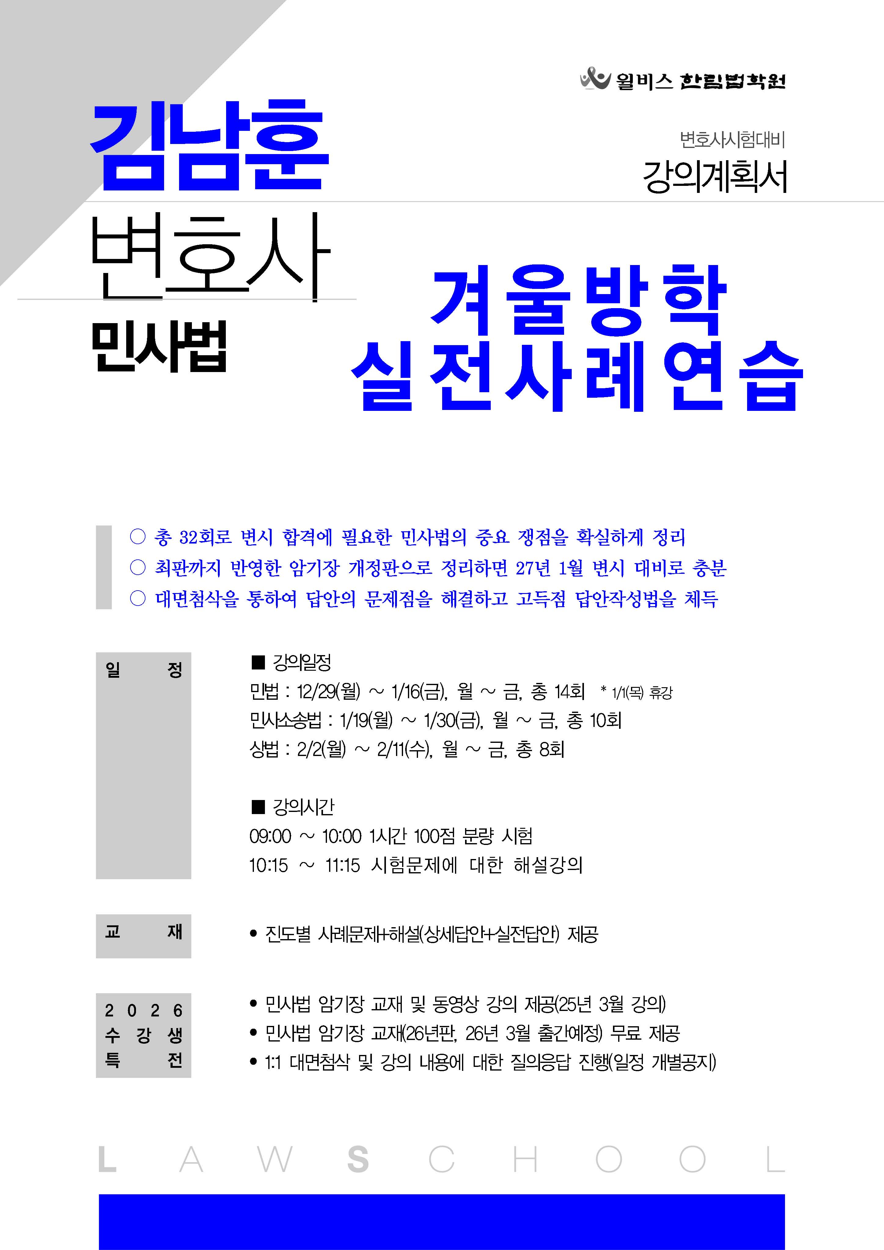 [겨울방학 특강] 김남훈 변호사 민법 실전사례연습(12/29, 월)
