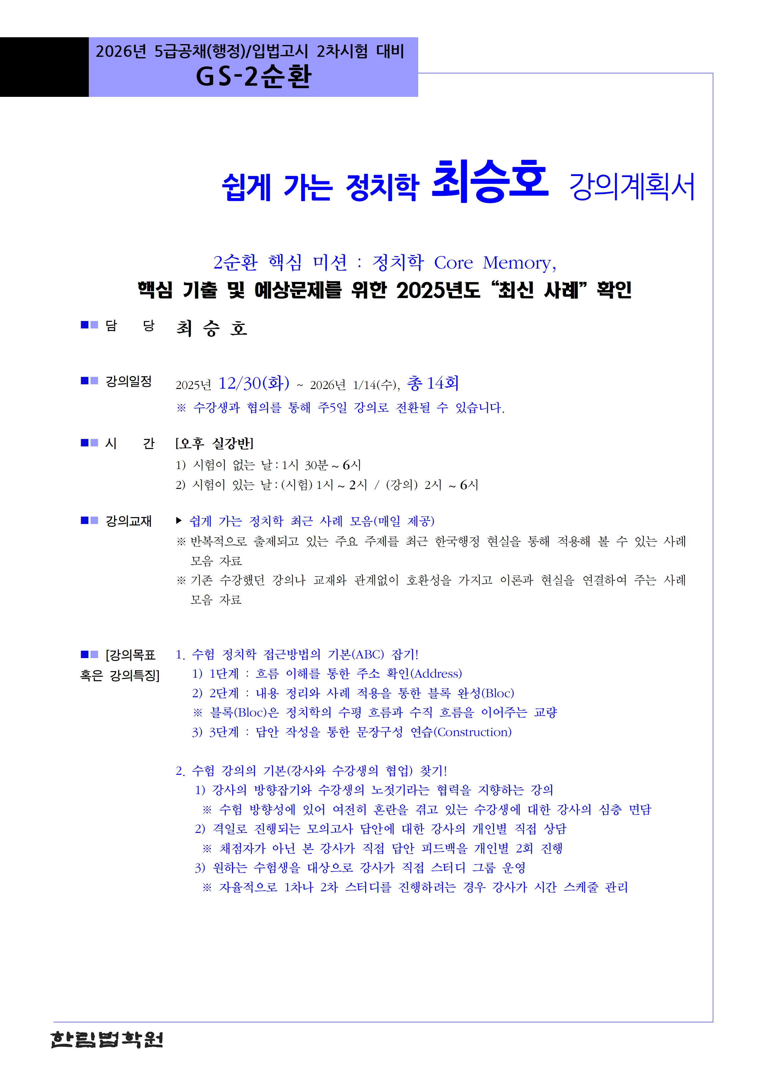 [2026년대비] 최승호 정치학 GS-2순환(12/30,화_개강)