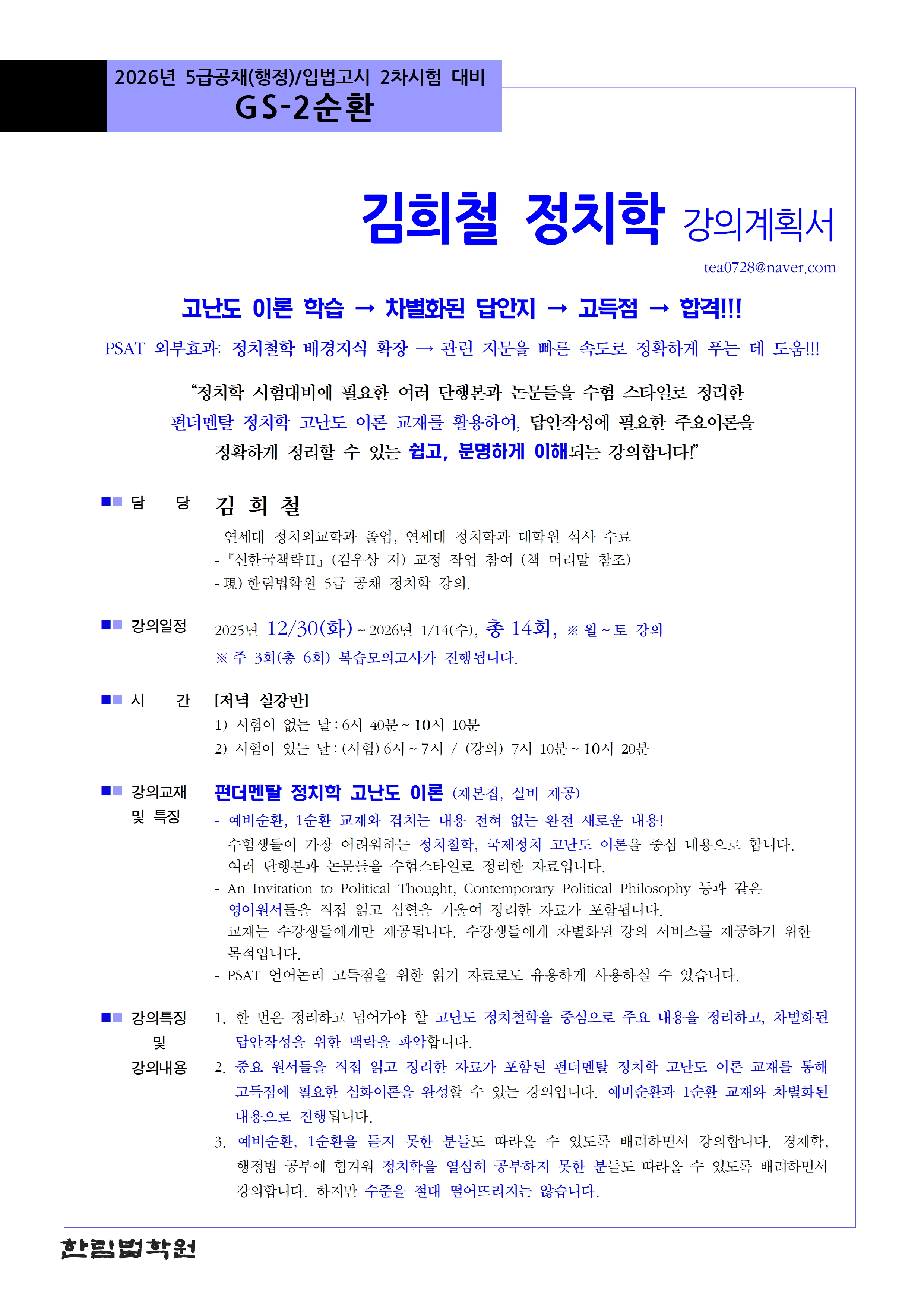 [2026년대비] 김희철 정치학 GS-2순환(12/30,화_개강)
