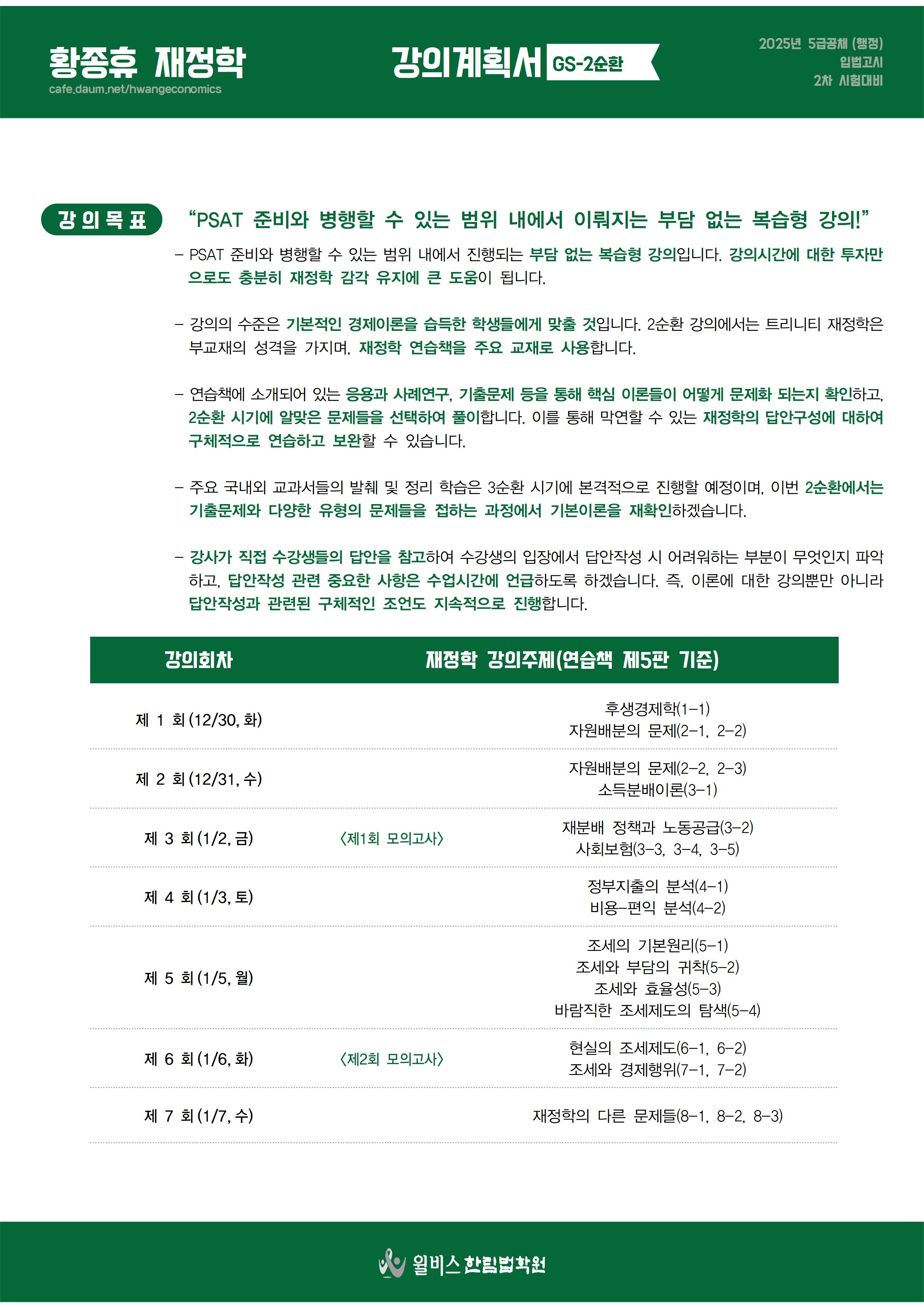 (최종)2025대비 황종휴 재정학 2순환 강의계획서.pdf