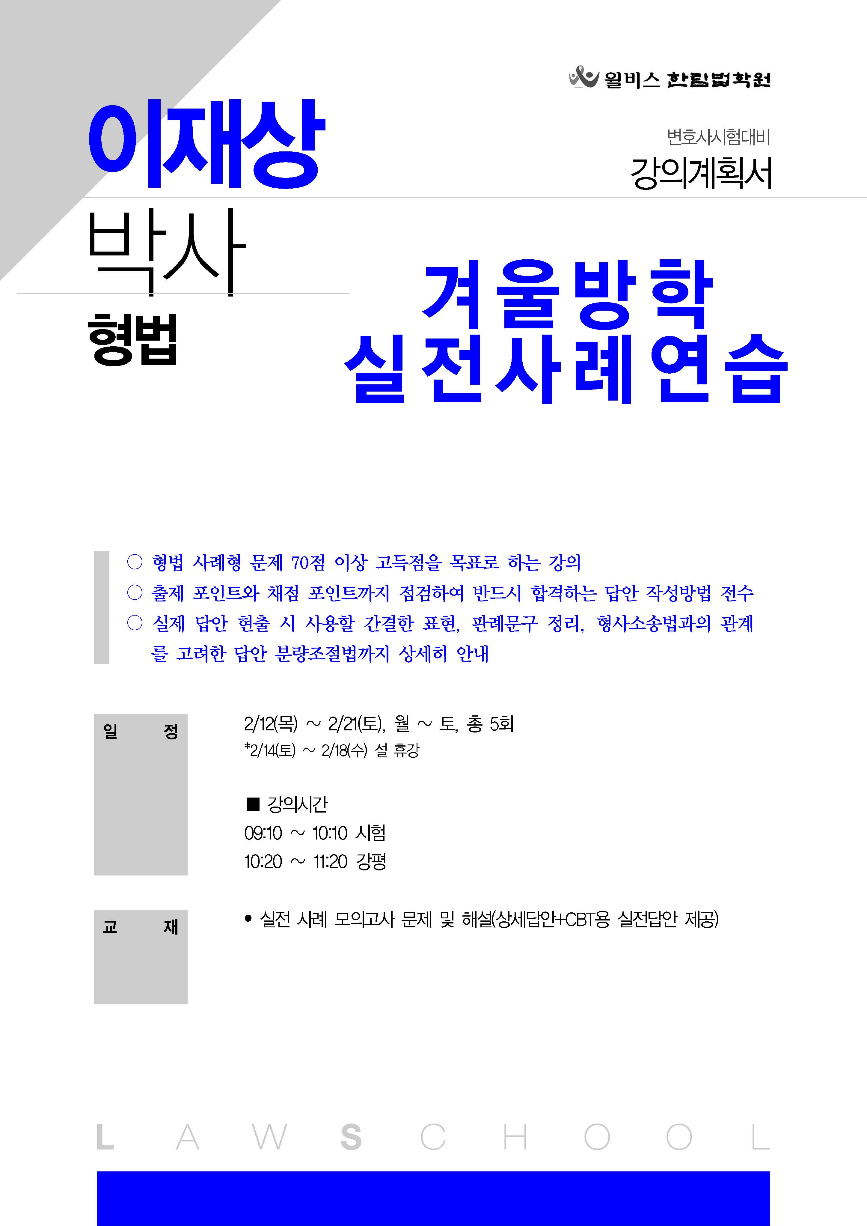 [겨울방학 특강] 이재상 박사 형법 실전사례연습(2/12, 목)