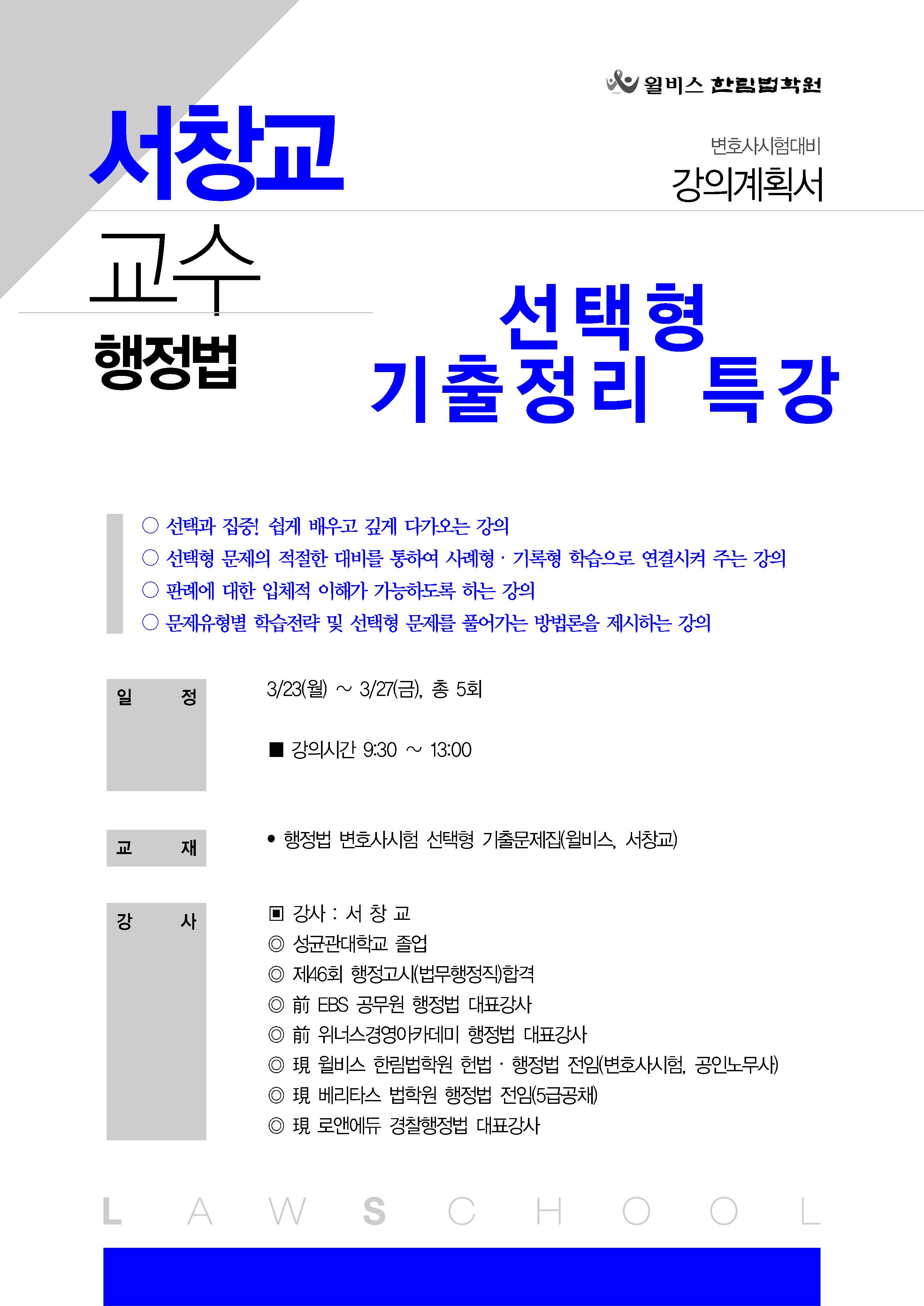 [특강] 서창교 교수 행정법 선택형 기출정리 특강(3/23, 월)