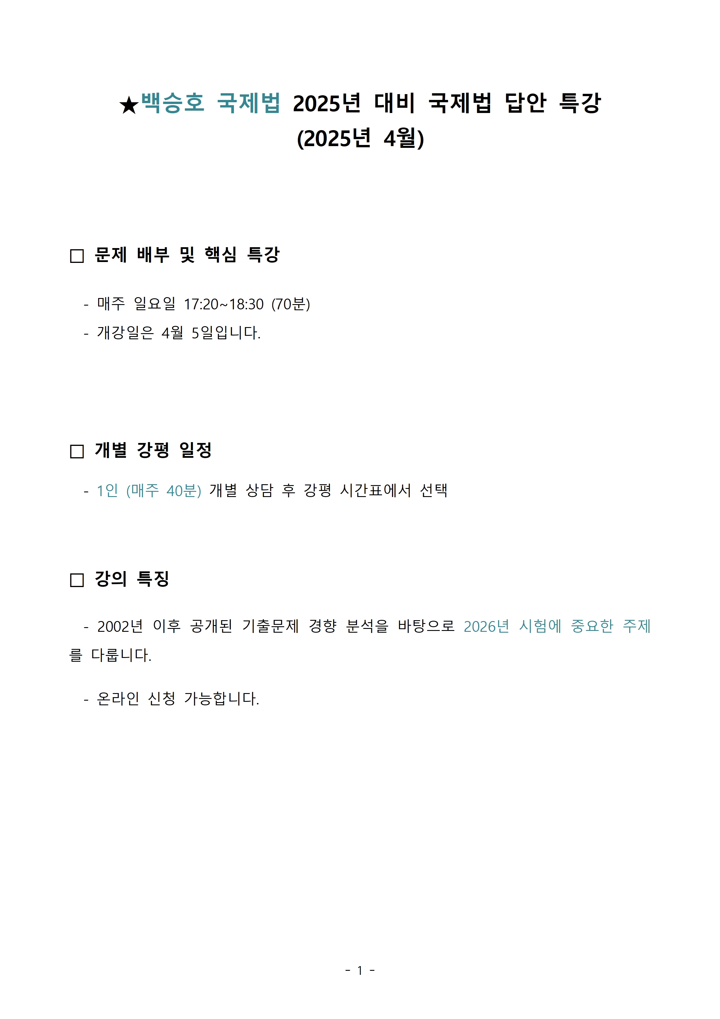 [마감유의]백승호 국제법 4월 답안특강(4/5,일_개강)
