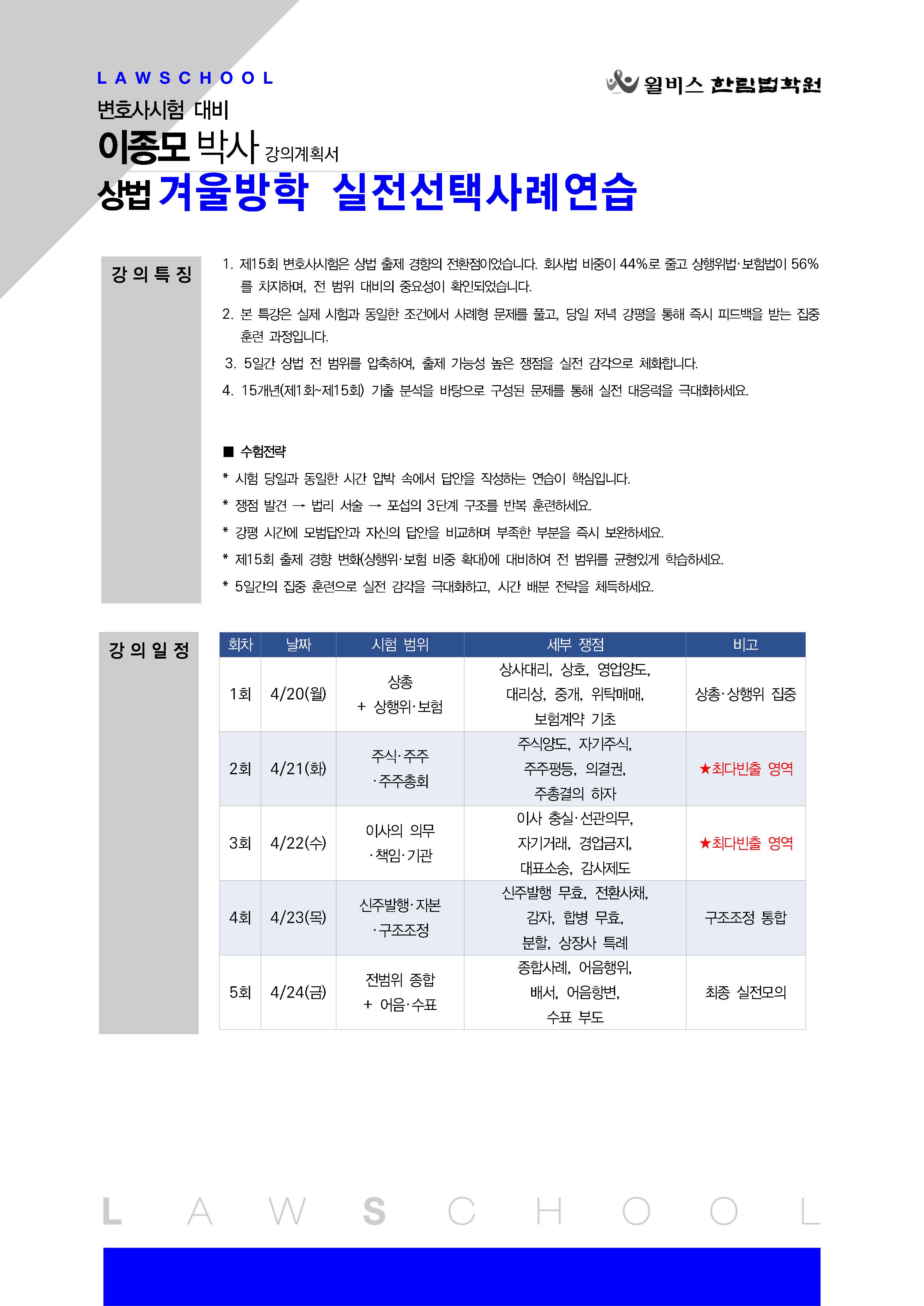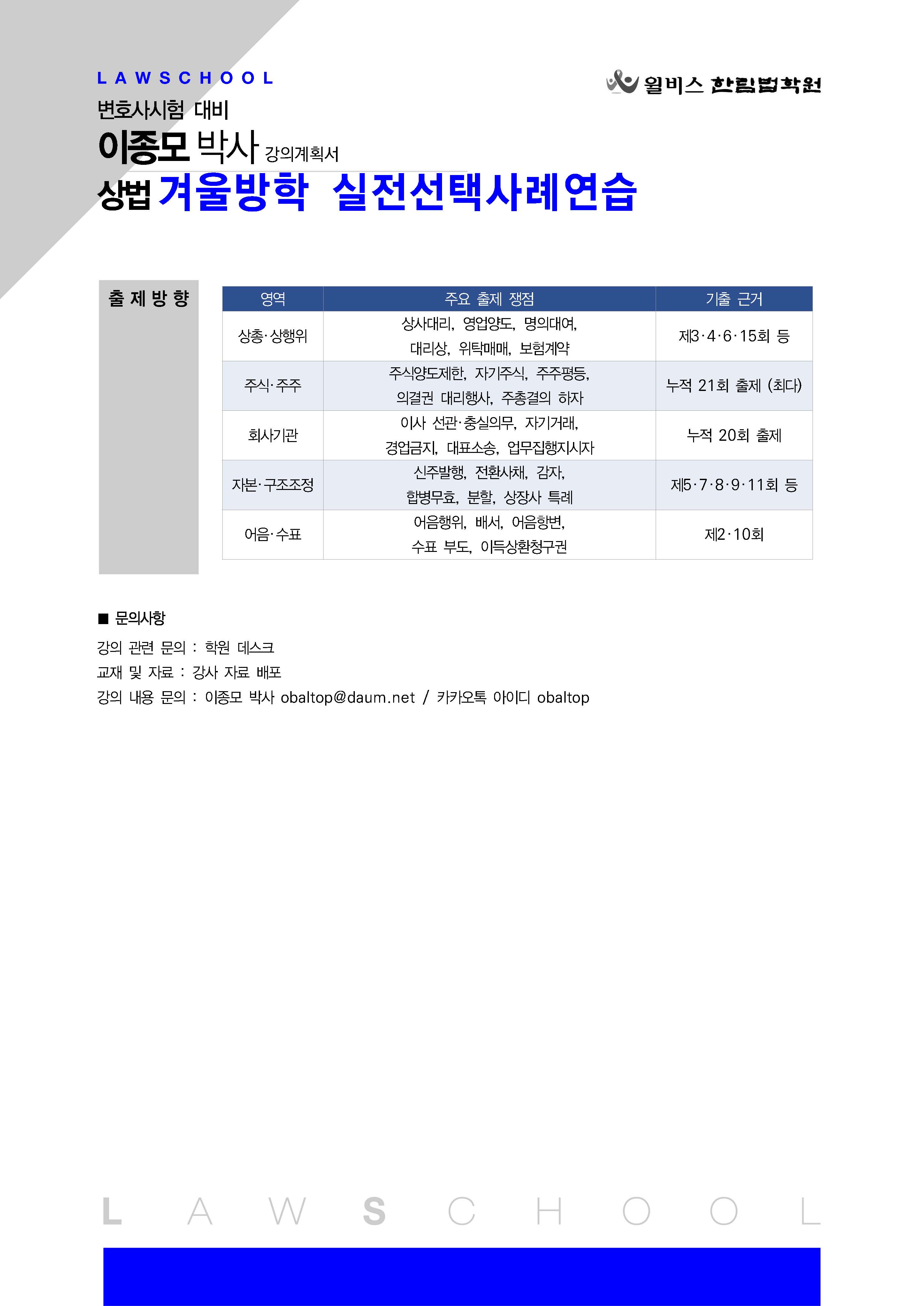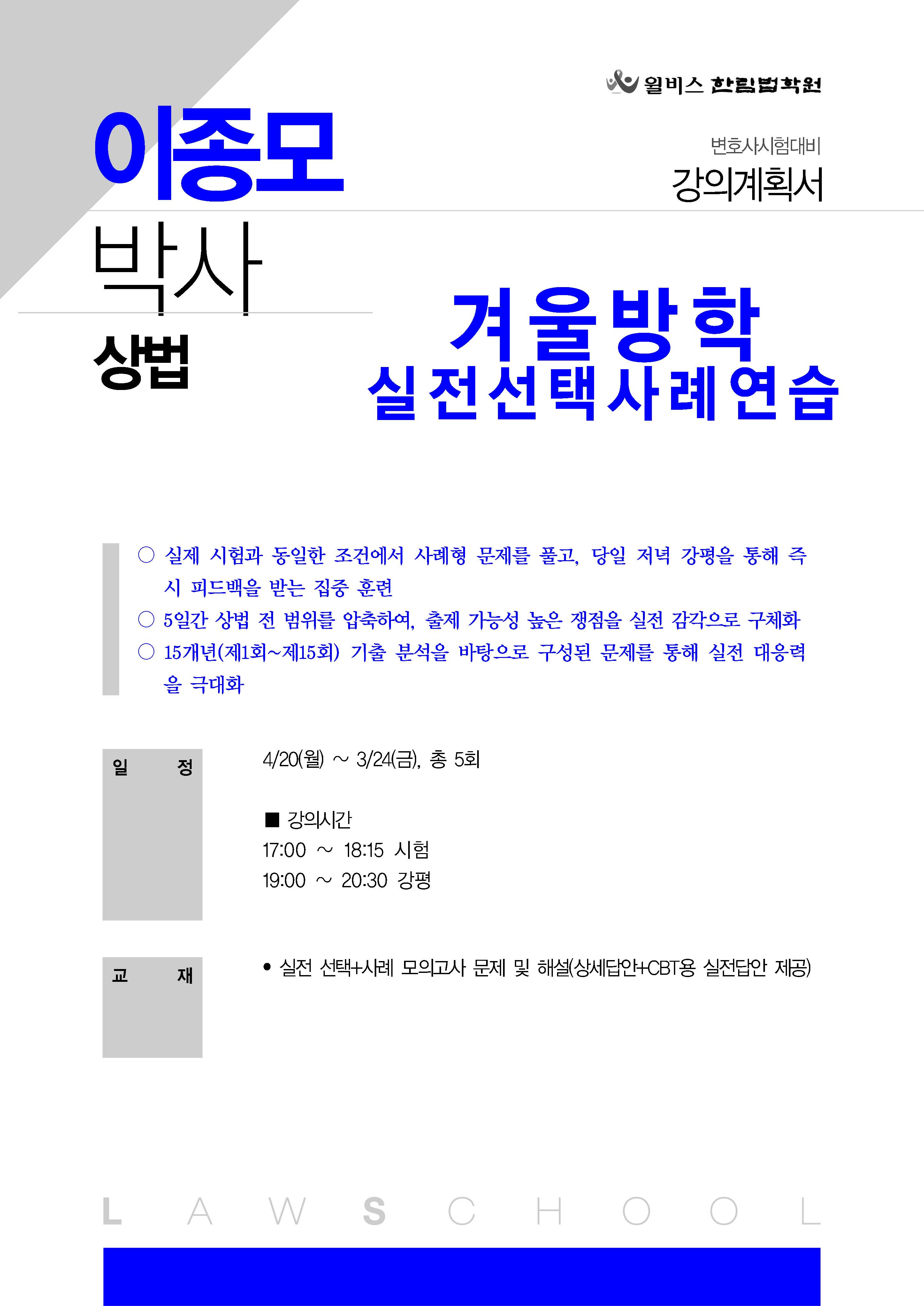 [겨울방학 특강] 이종모 박사 상법 실전선택사례연습(4/20, 월)