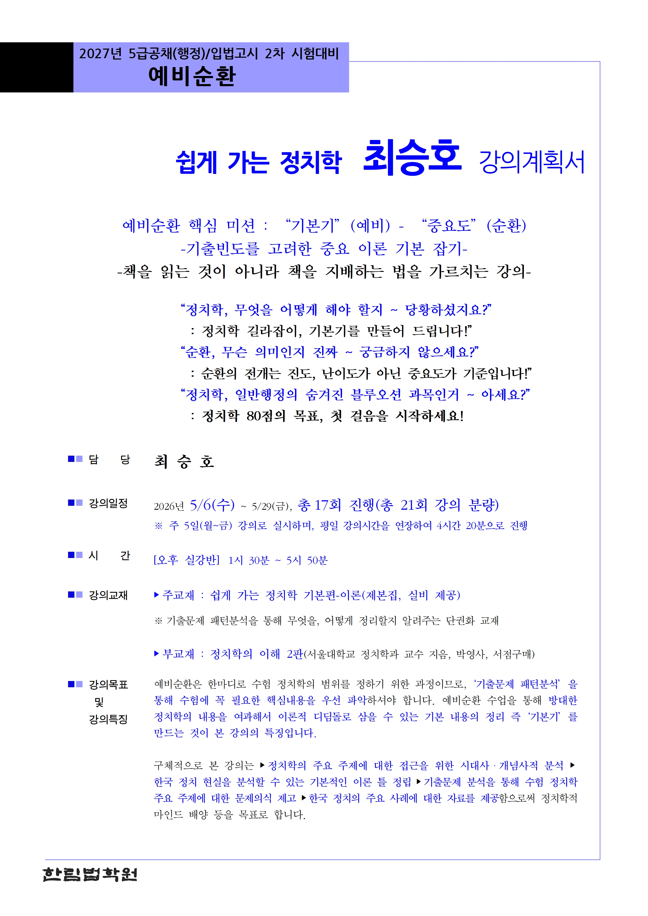 [2027년대비] 최승호 정치학 예비순환(5/6,수_개강)