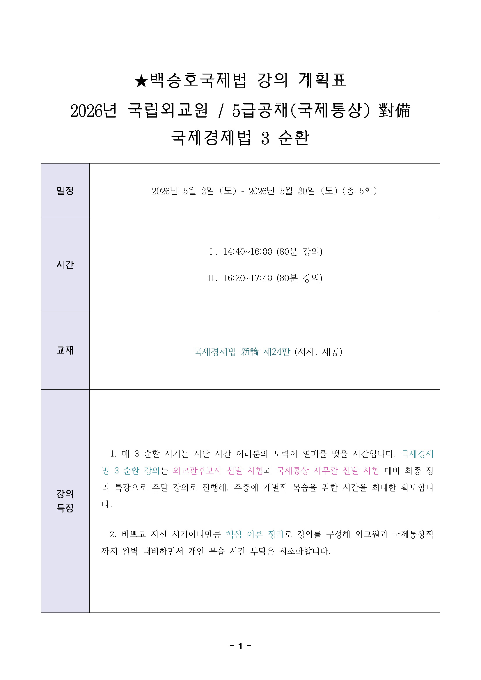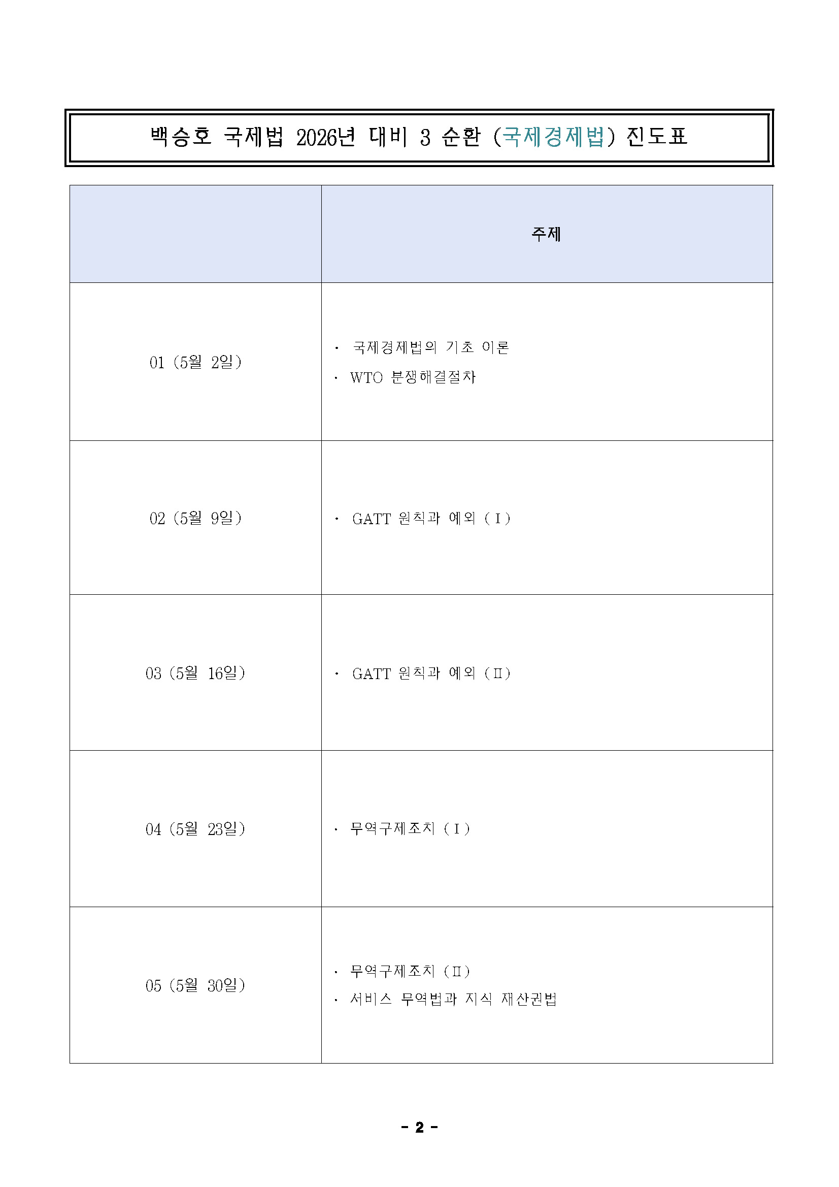 2026년 대비 한림 백승호국제법 행외시 3순환 국제경제법 계획표&진도표.pdf