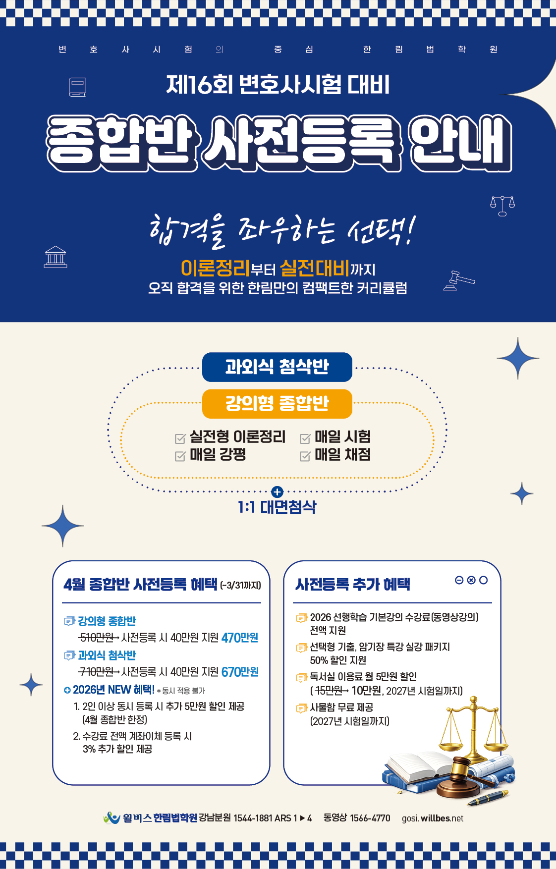 ★종합반 OPEN★ 제16회 변호사시험 대비 4월 종합반 사전등록 안내