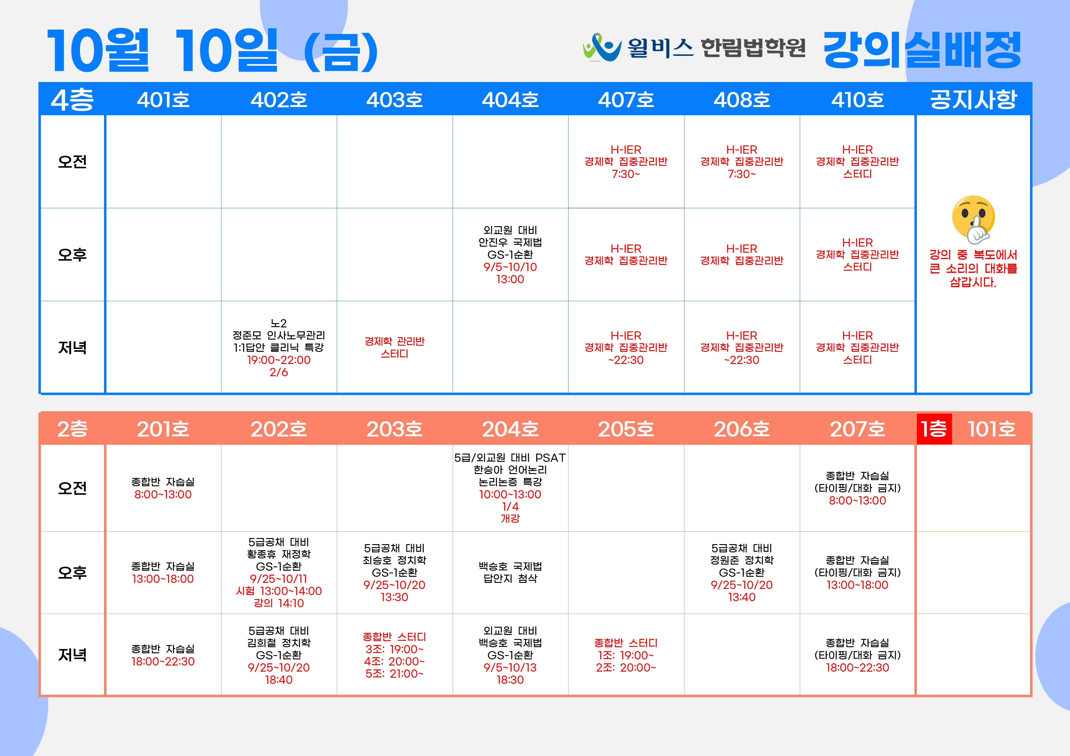 10월 10일(금) 강의실 배정표