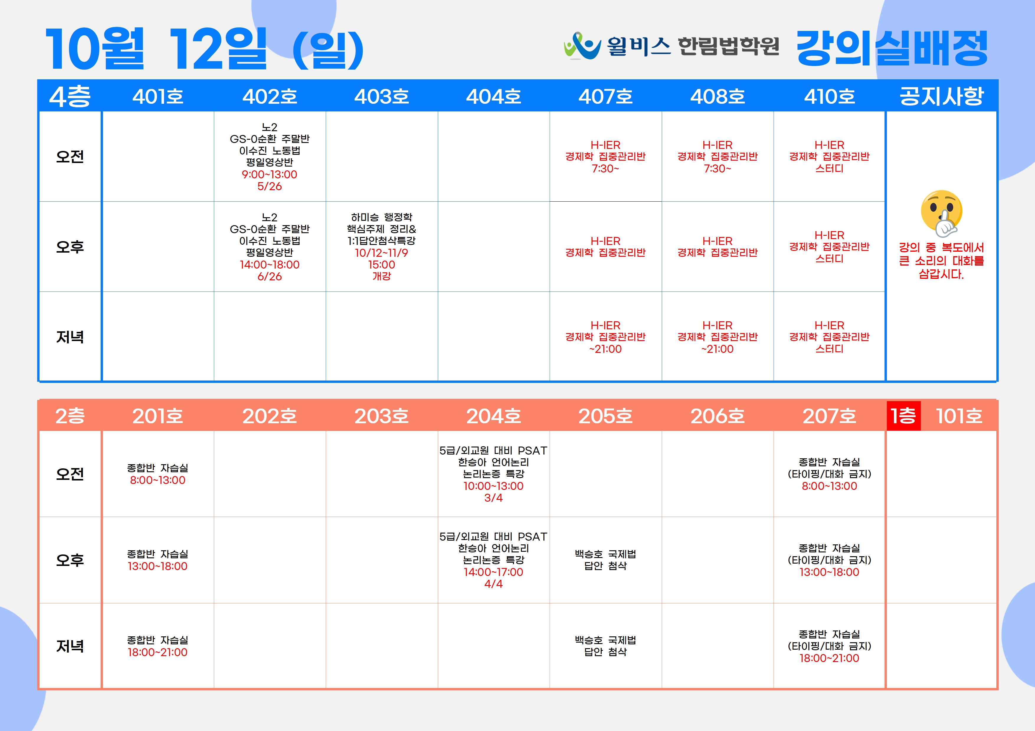10월 12일(일) 강의실 배정표