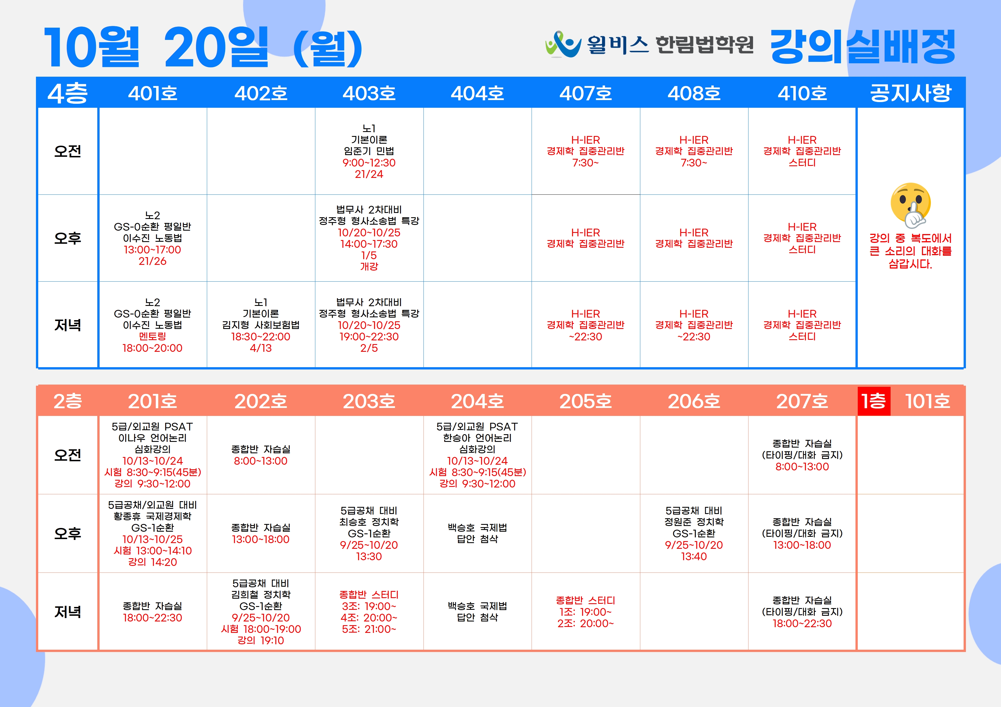 10월 20일(월) 강의실 배정표