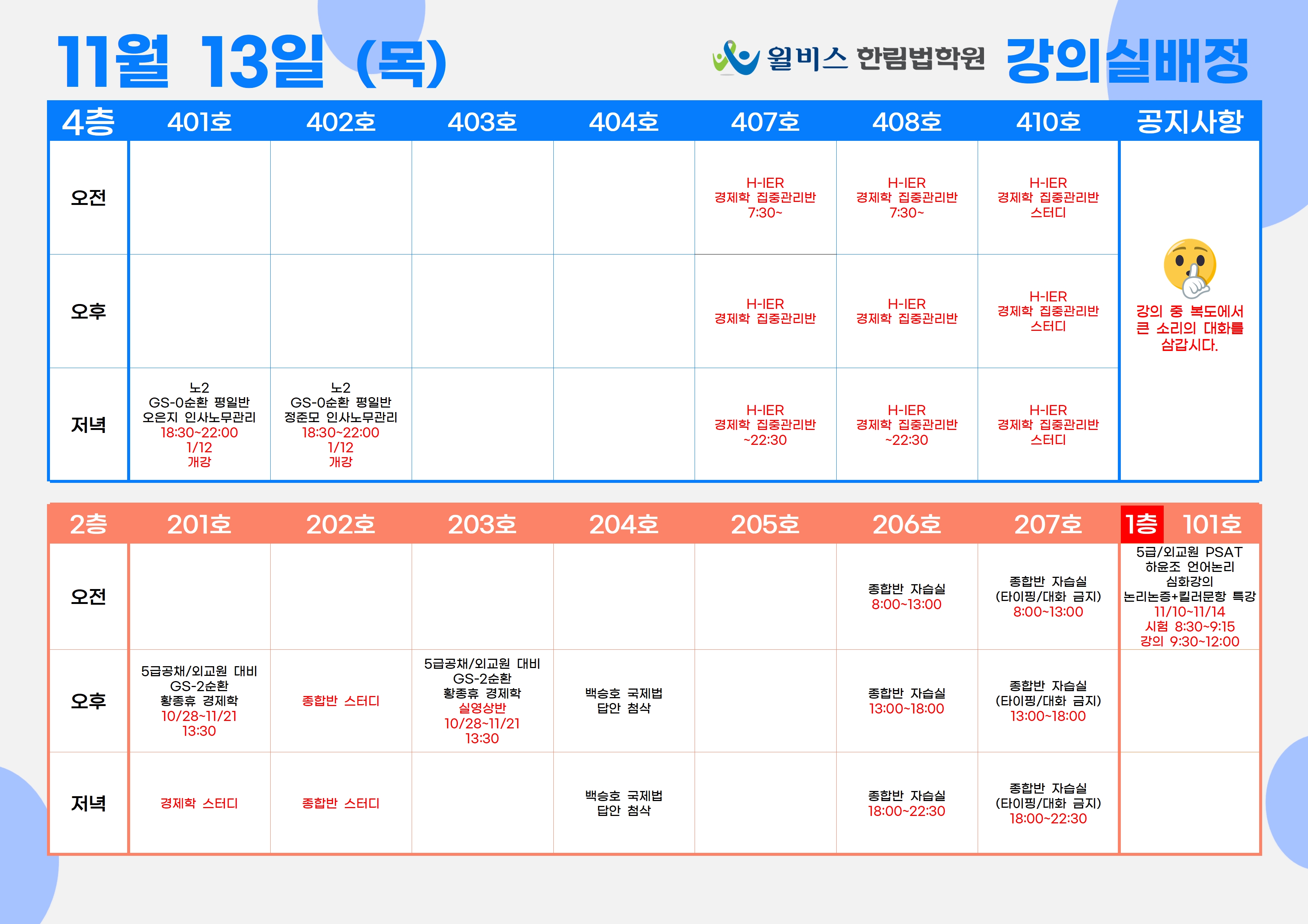 11월 13일(목) 강의실 배정표