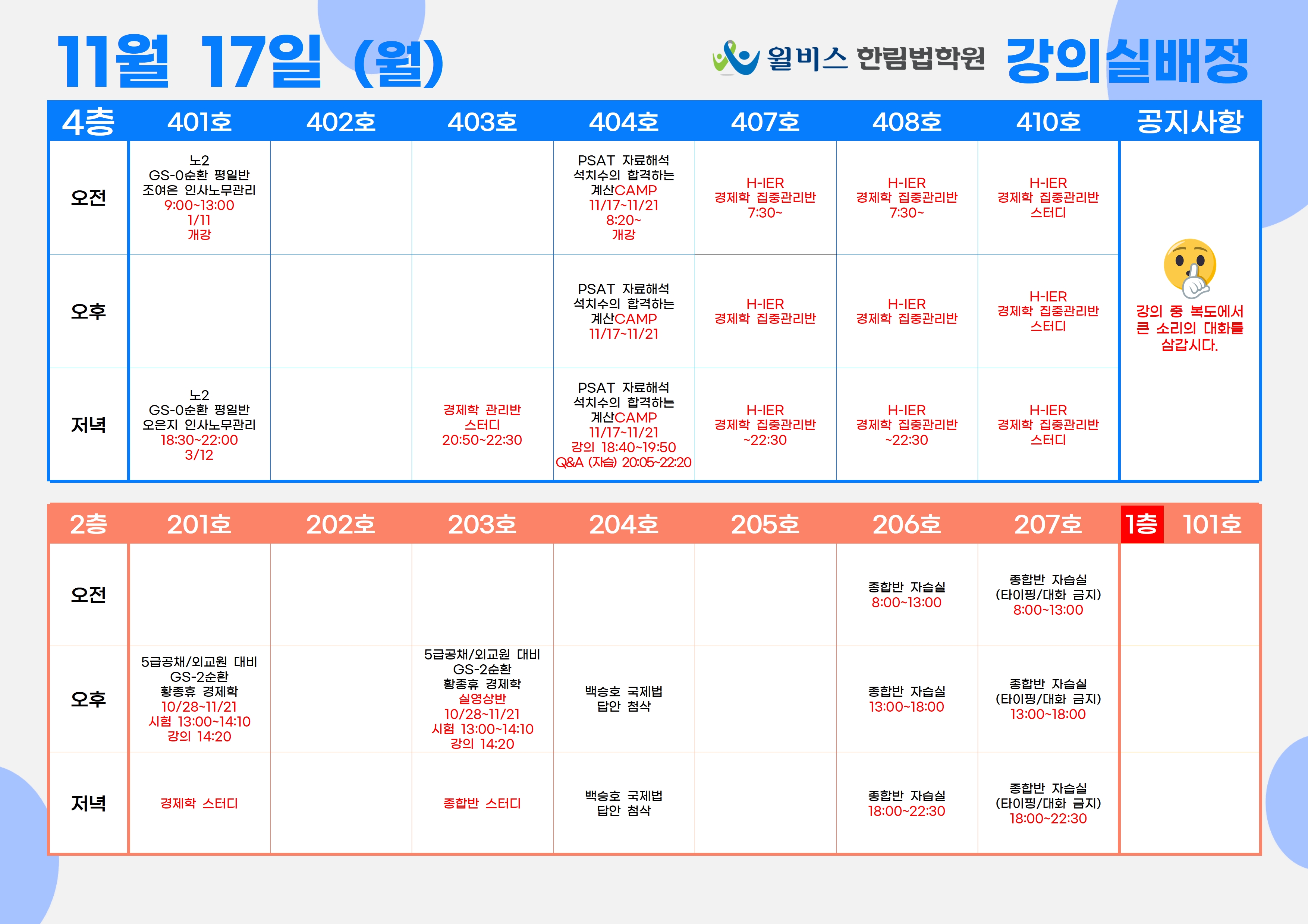 11월 17일(월) 강의실 배정표