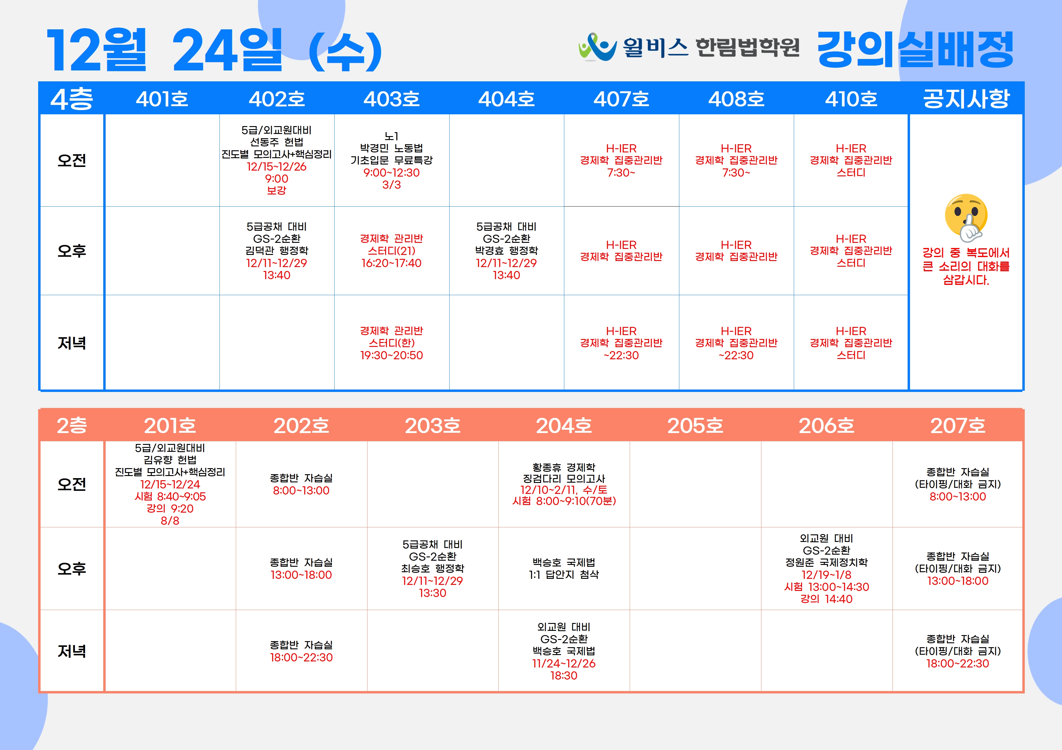12월 24일(수) 강의실 배정표