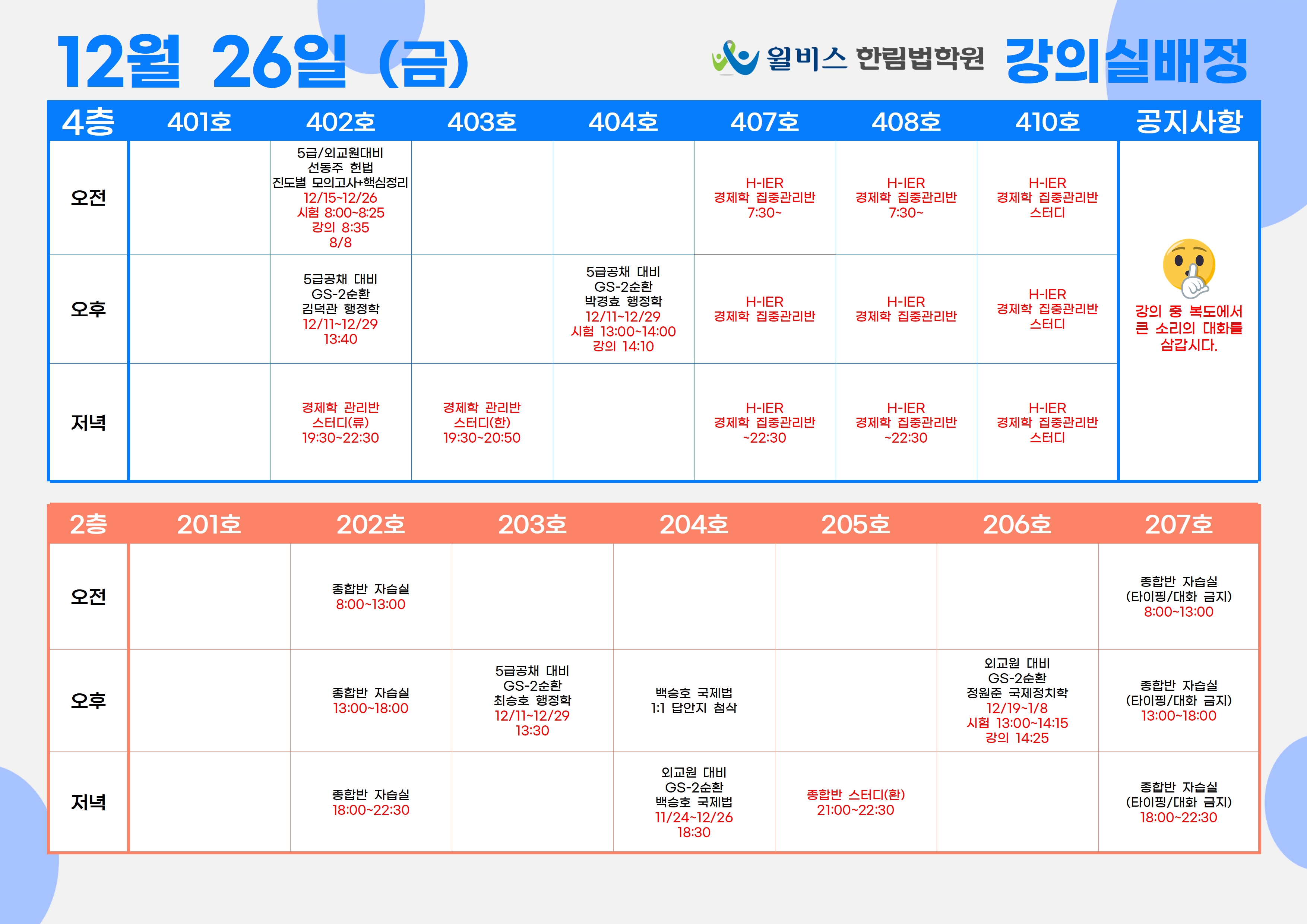 12월 26일(금) 강의실 배정표