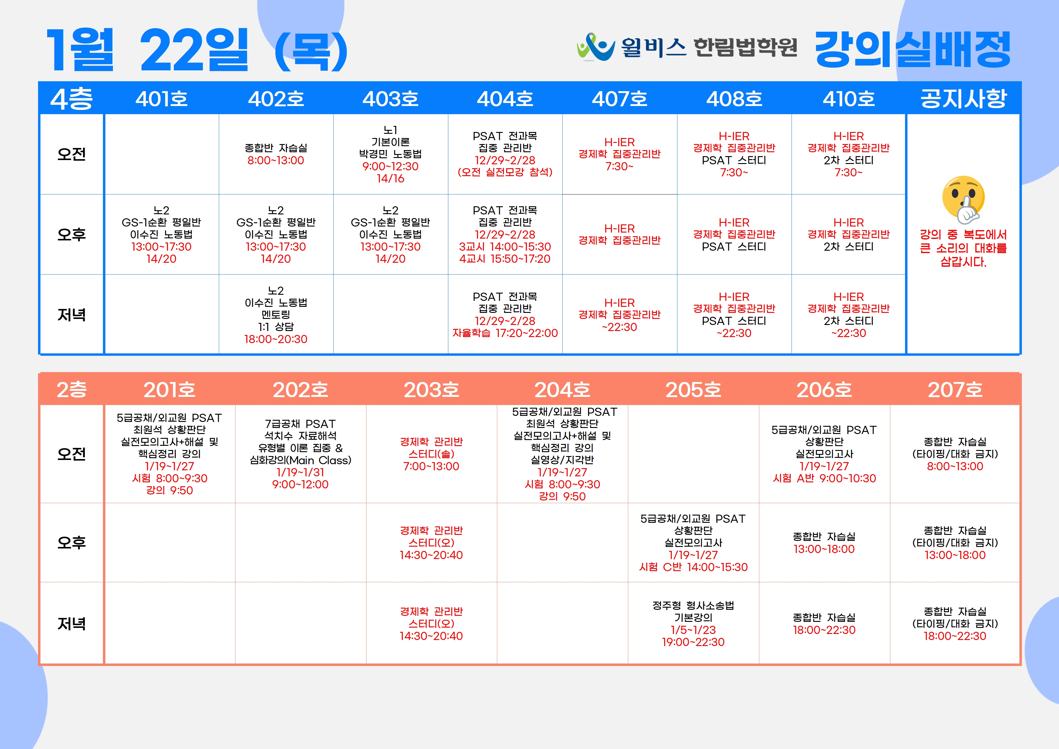 1월 22일(목) 강의실 배정표