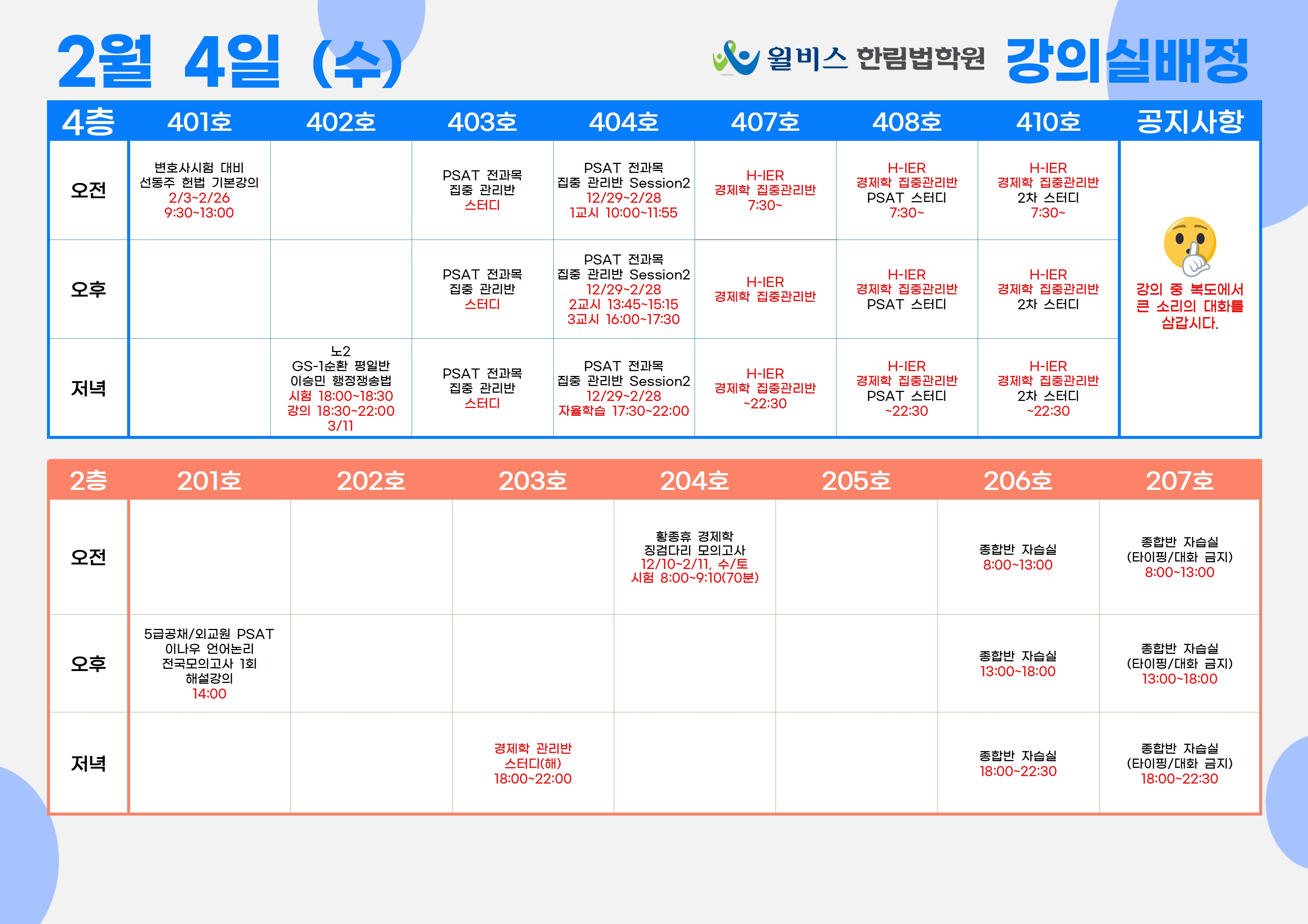 2월 4일(수) 강의실 배정표