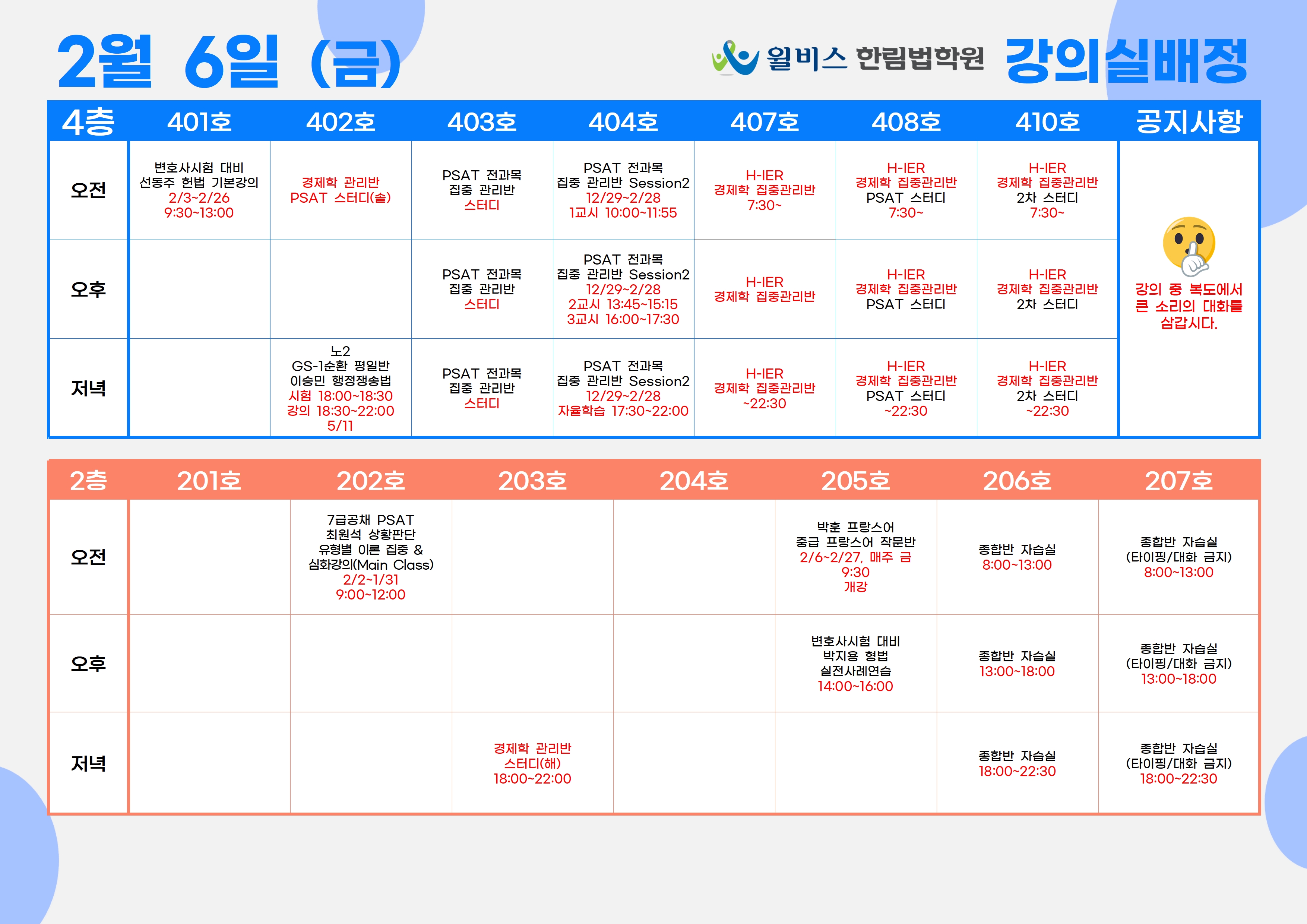2월 6일(금) 강의실 배정표