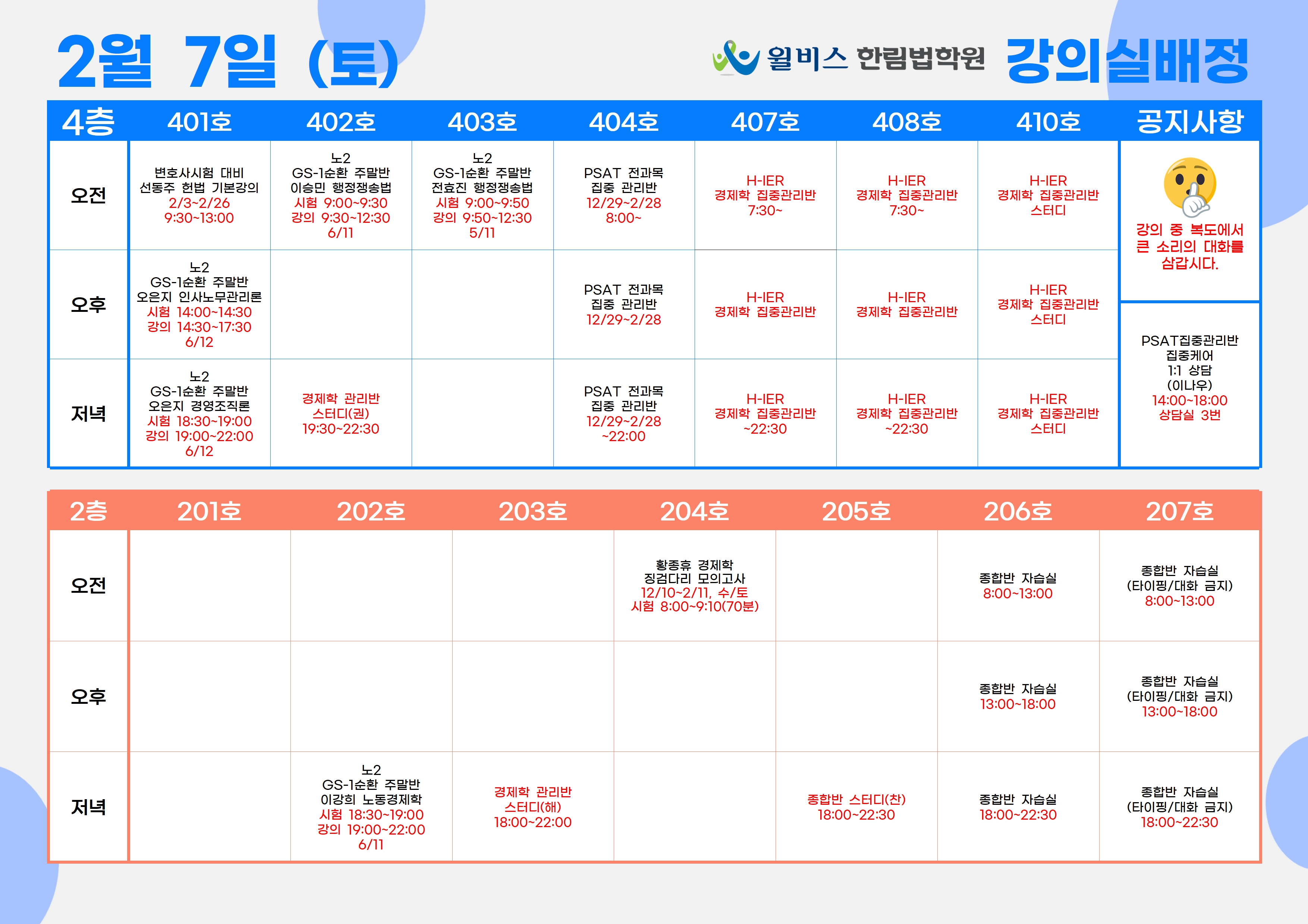 2월 7일(토) 강의실 배정표