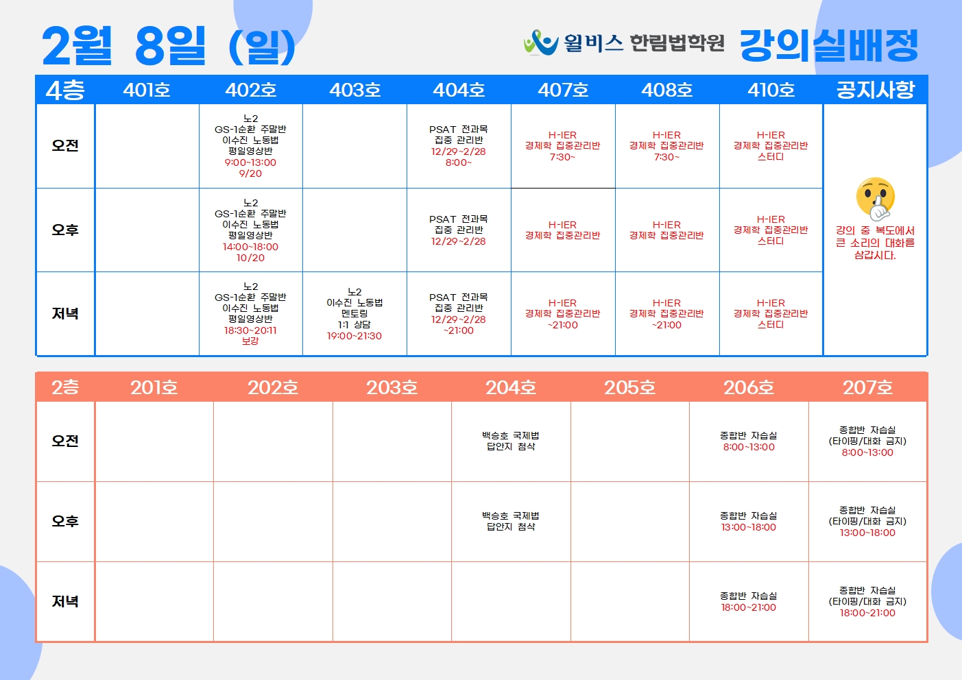 2월 8일(일) 강의실 배정표